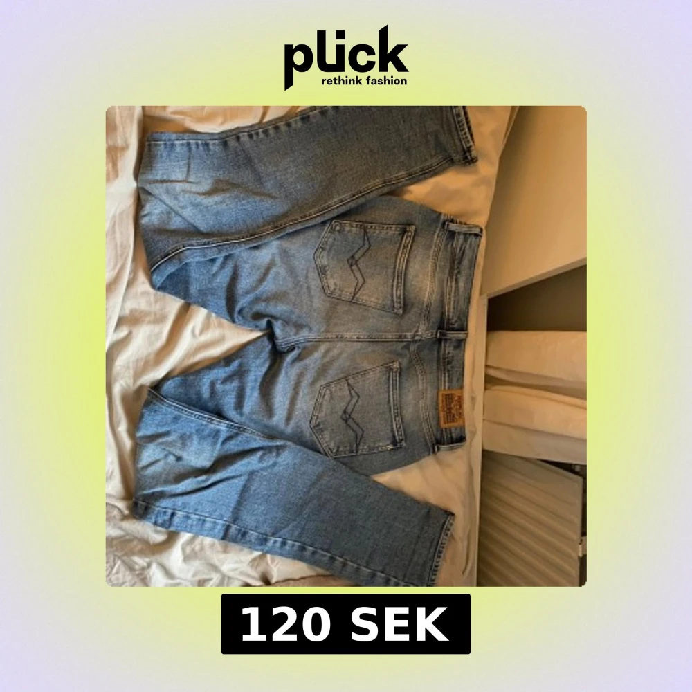 Snygga blå jeans från Replay med klassisk femficksdesign och en liten metall-logga vid fickan. De har en normal passform och är tillverkade i slitstarkt denim. Perfekta för en avslappnad stil. Använda storlek 166