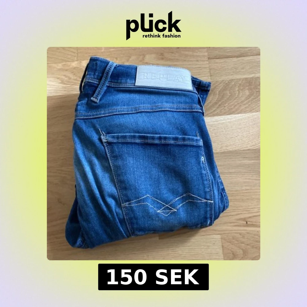 Snygga blå jeans från Replay i storlek 32. Jeansen är i bra skick.