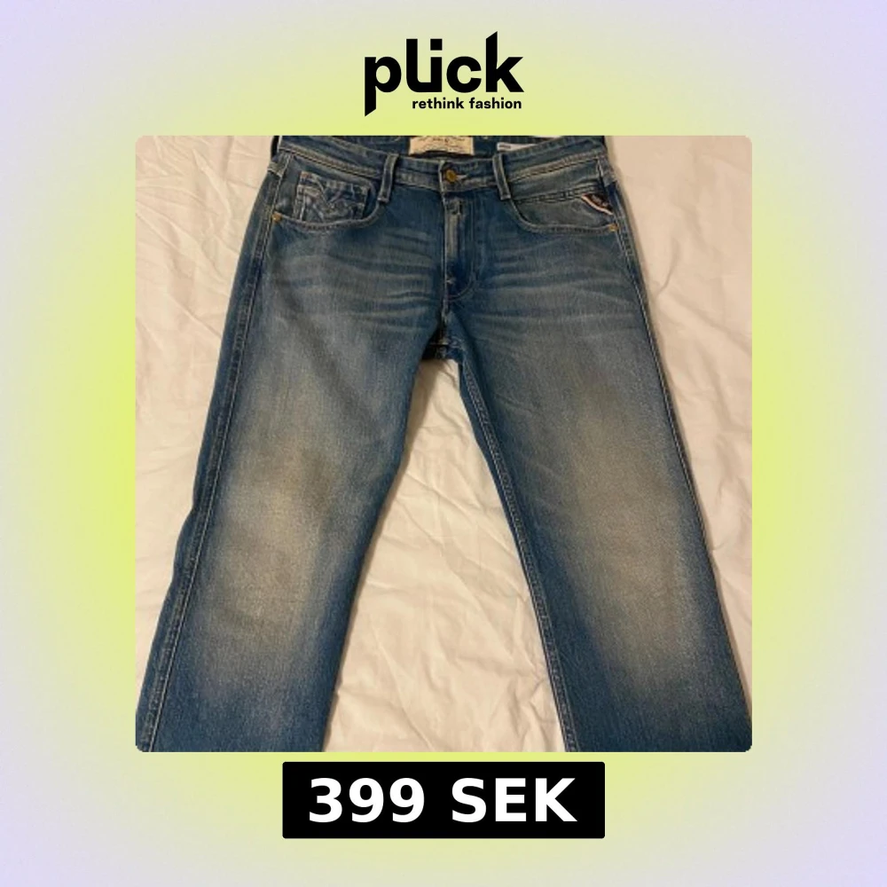 Snygga blå jeans från Replay, modell Anbass med slim fit. Klassisk design med fem fickor och knappgylf. Perfekta för en stilren look.