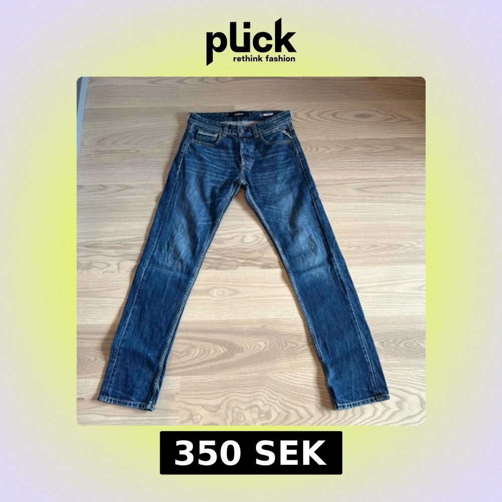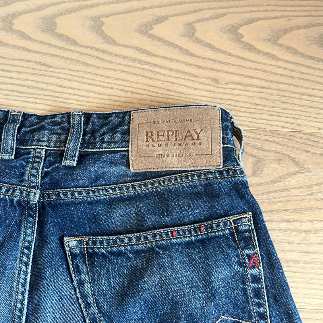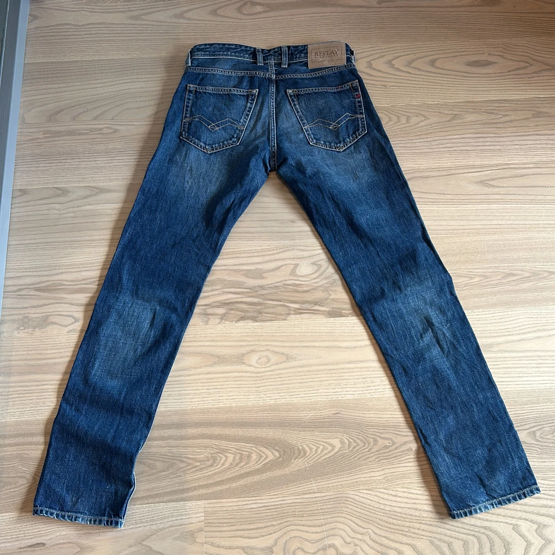 Säljer ett par snygga blå jeans från Replay, modell Grover. De har en klassisk femficksdesign och en straight passform. Perfekta för en avslappnad stil.
