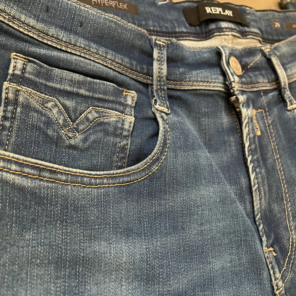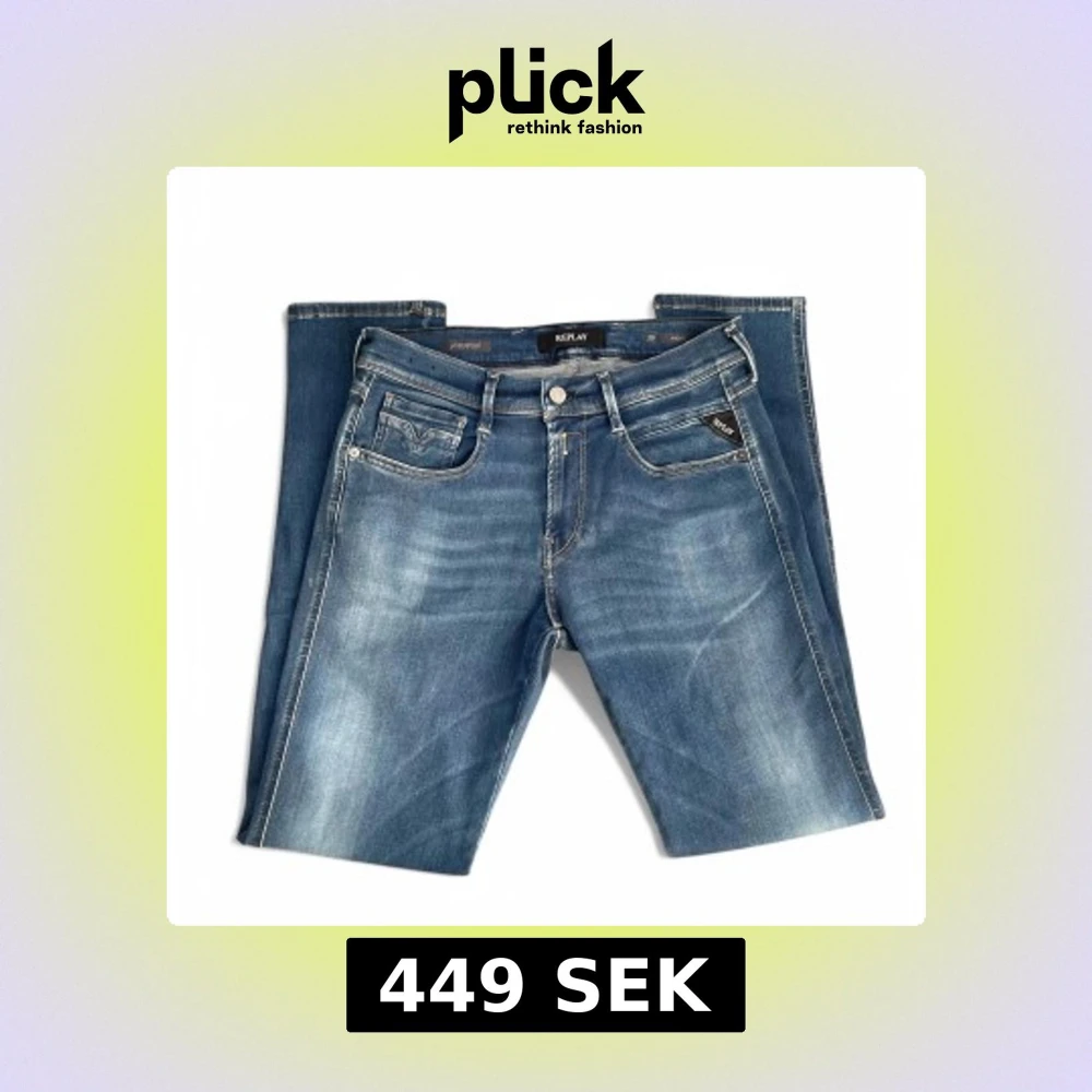 Snygga blå jeans från Replay som är använda fåtal gånger! Jeansen ser helt nya ut och därför är mitt pris 449 kr. Skriv vid behov av fler bilder eller vid minsta fundering. Nypris: 1599