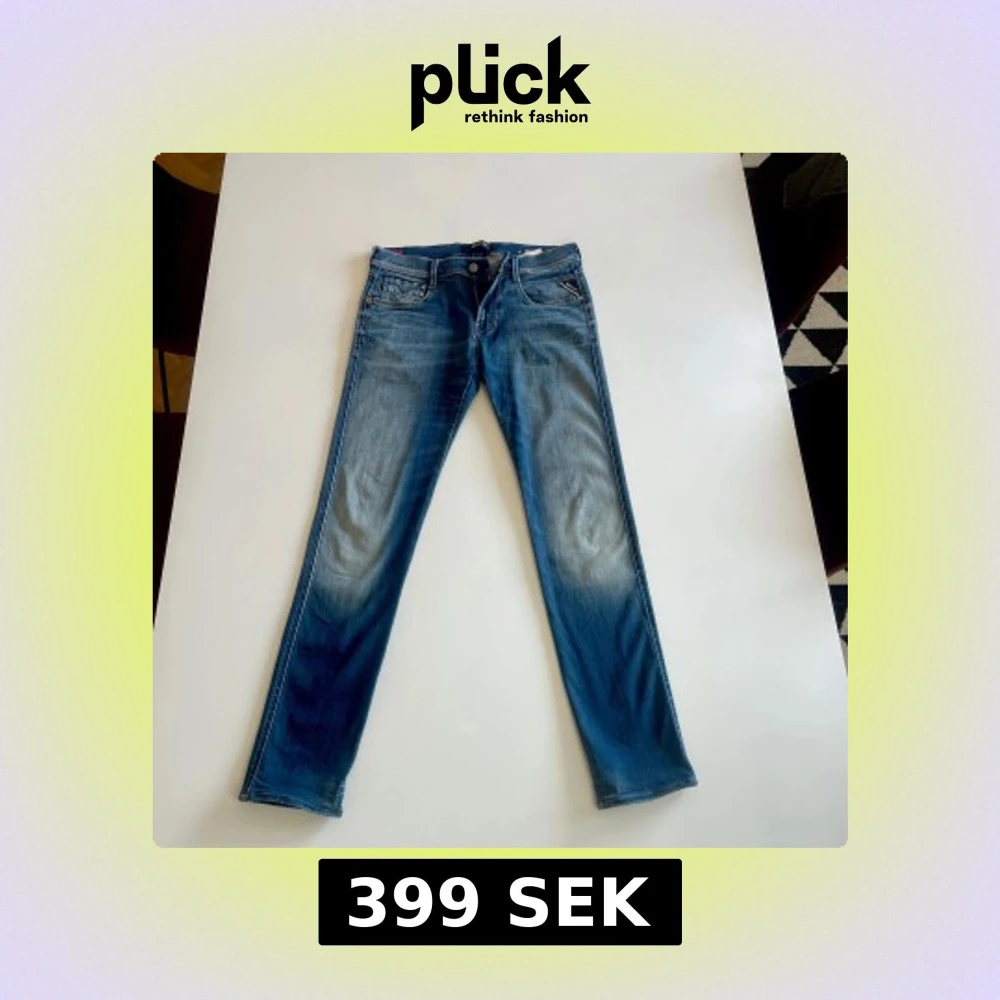 Snygga blå jeans från Replay med en klassisk femficksdesign. Modellen är anbass hyperflex och är storlek w30 l32