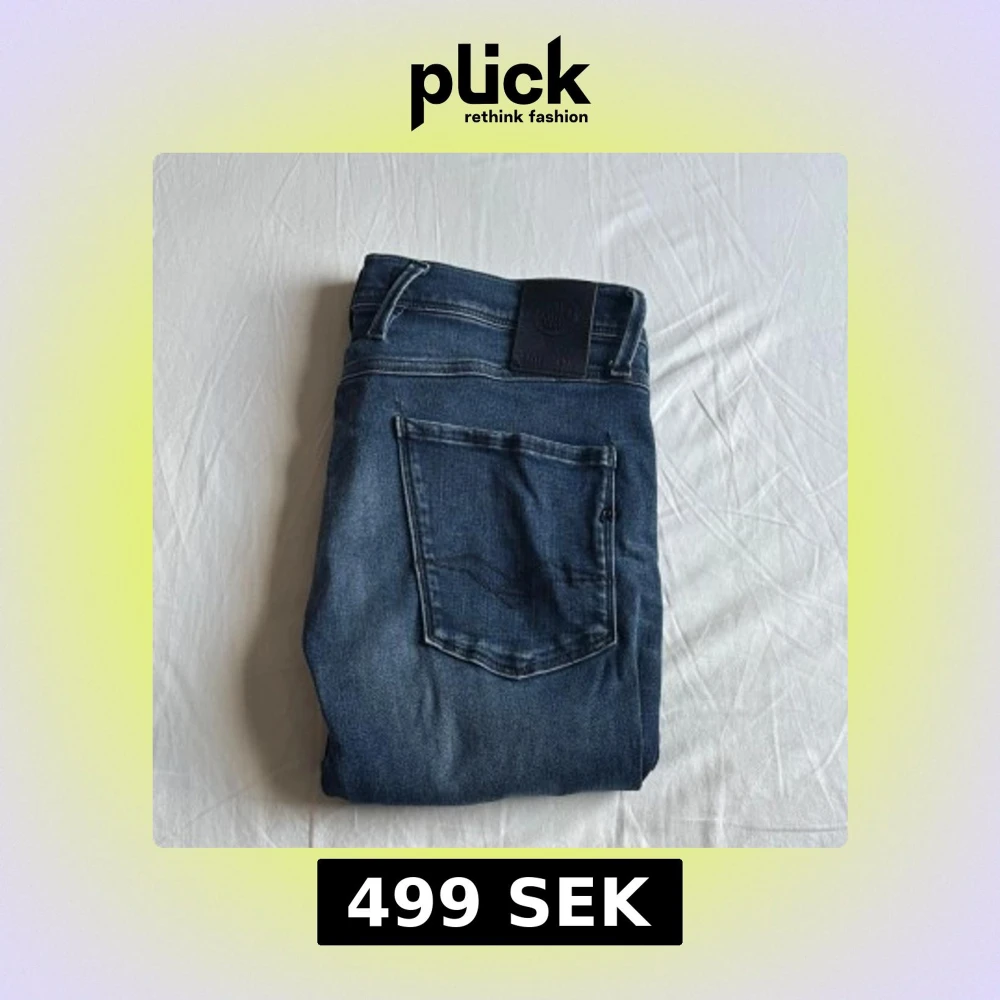 Snygga blå replay anbass jeans. Storlek W32 L34. Slim fit. Extremt bra skick inga defekter. Skriv vid funderingar!
