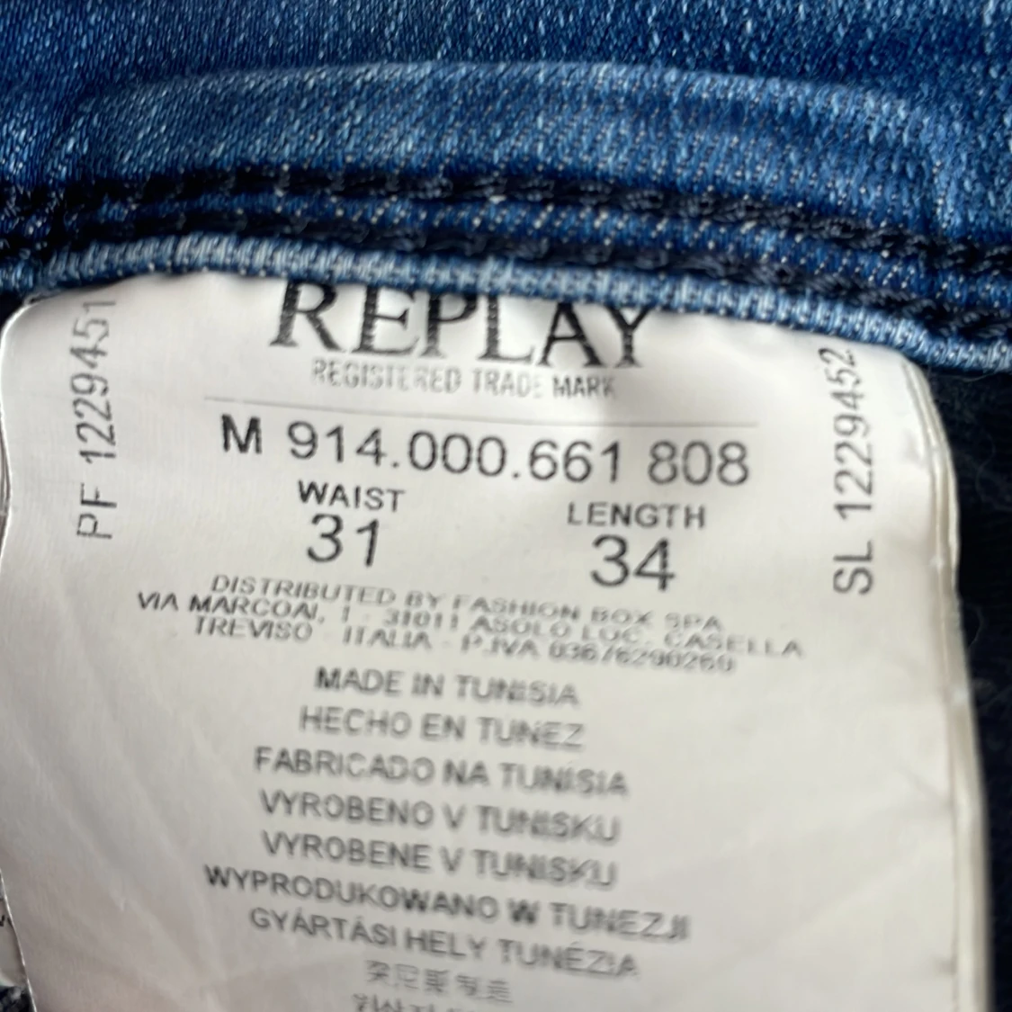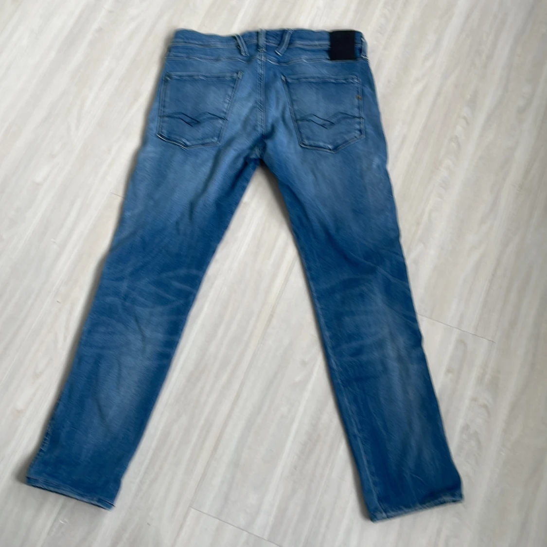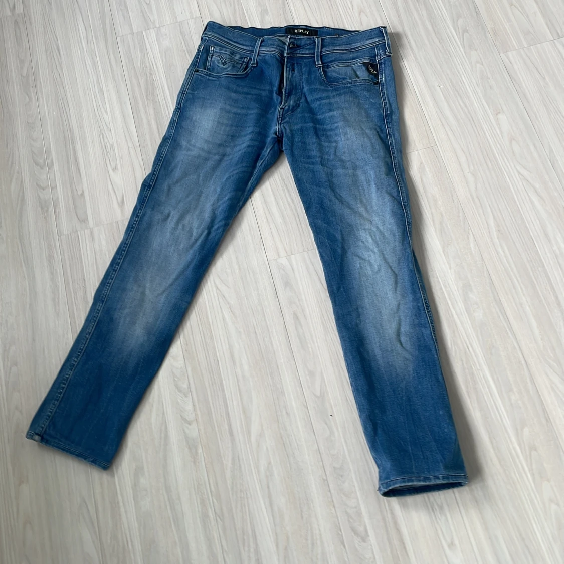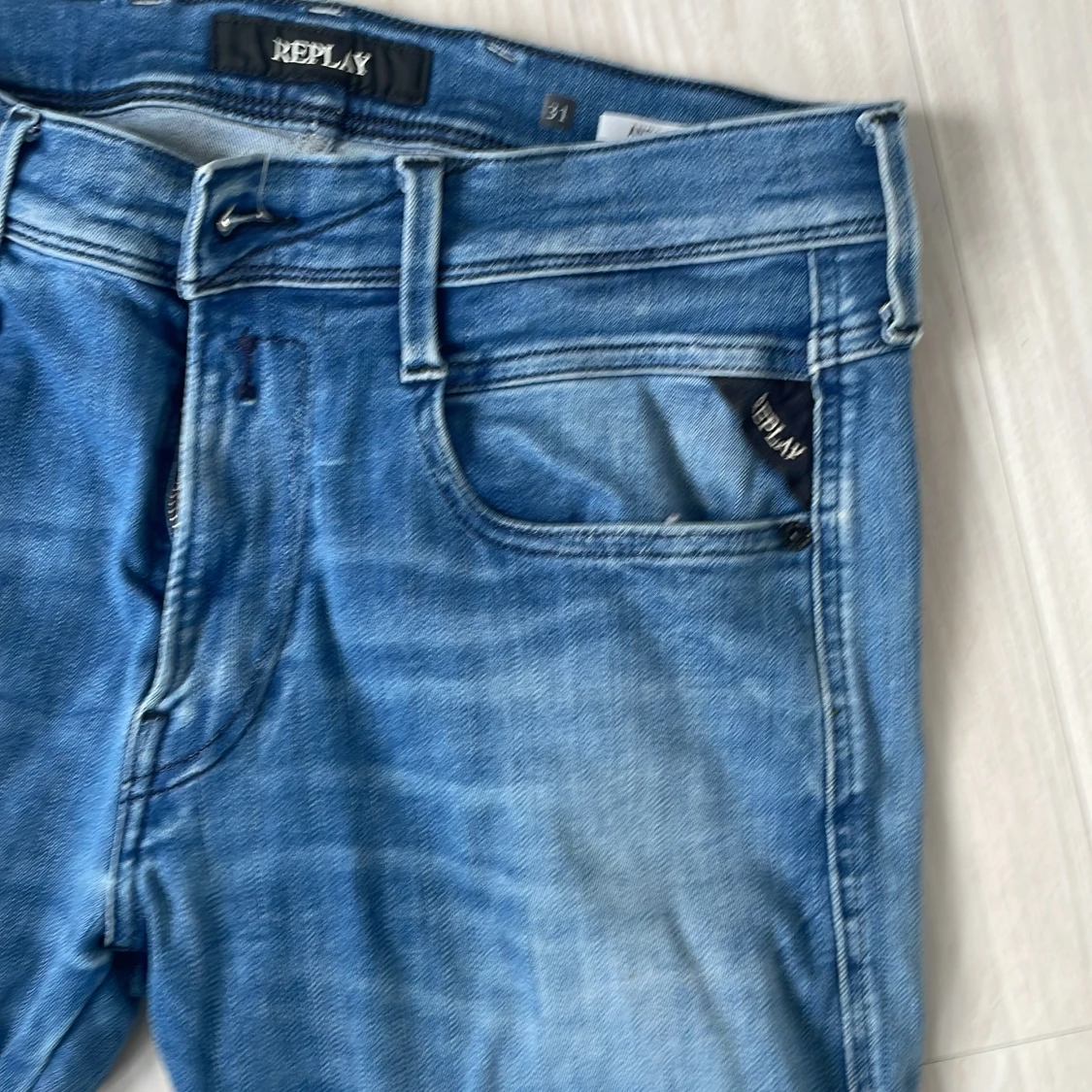 Säljer ett par snygga blå jeans från Replay. Midjemått är W31 och längd 34.