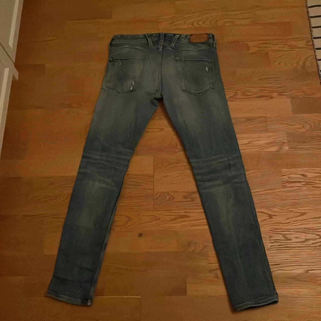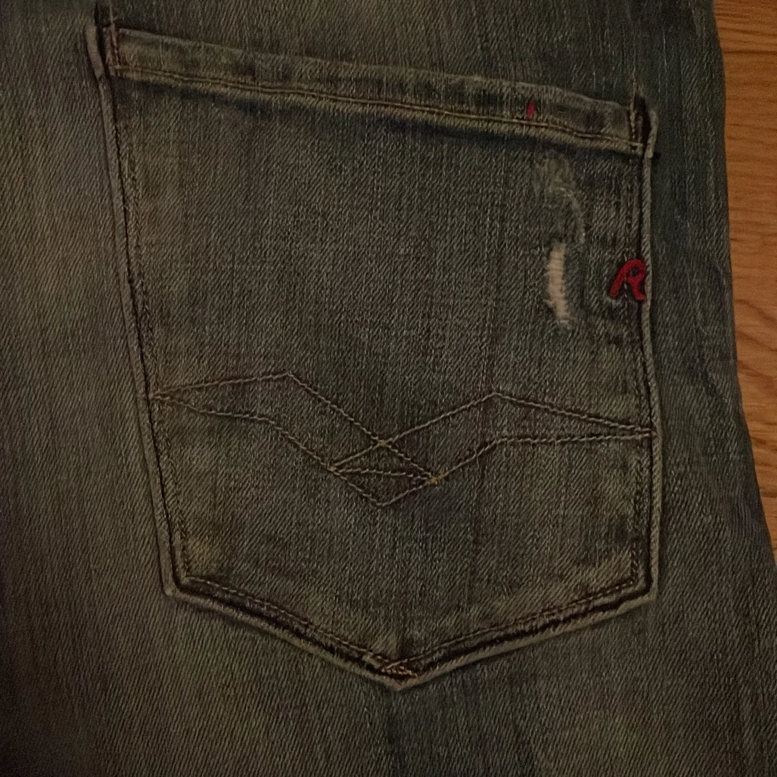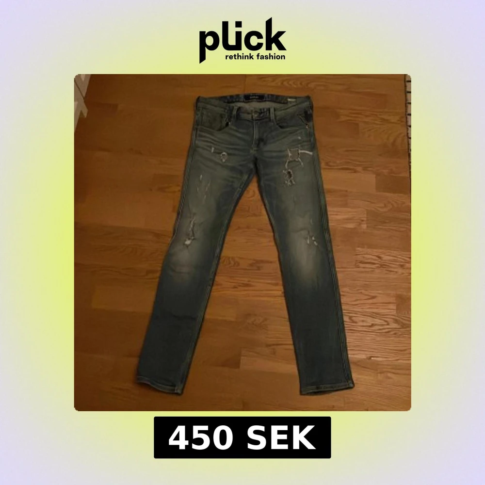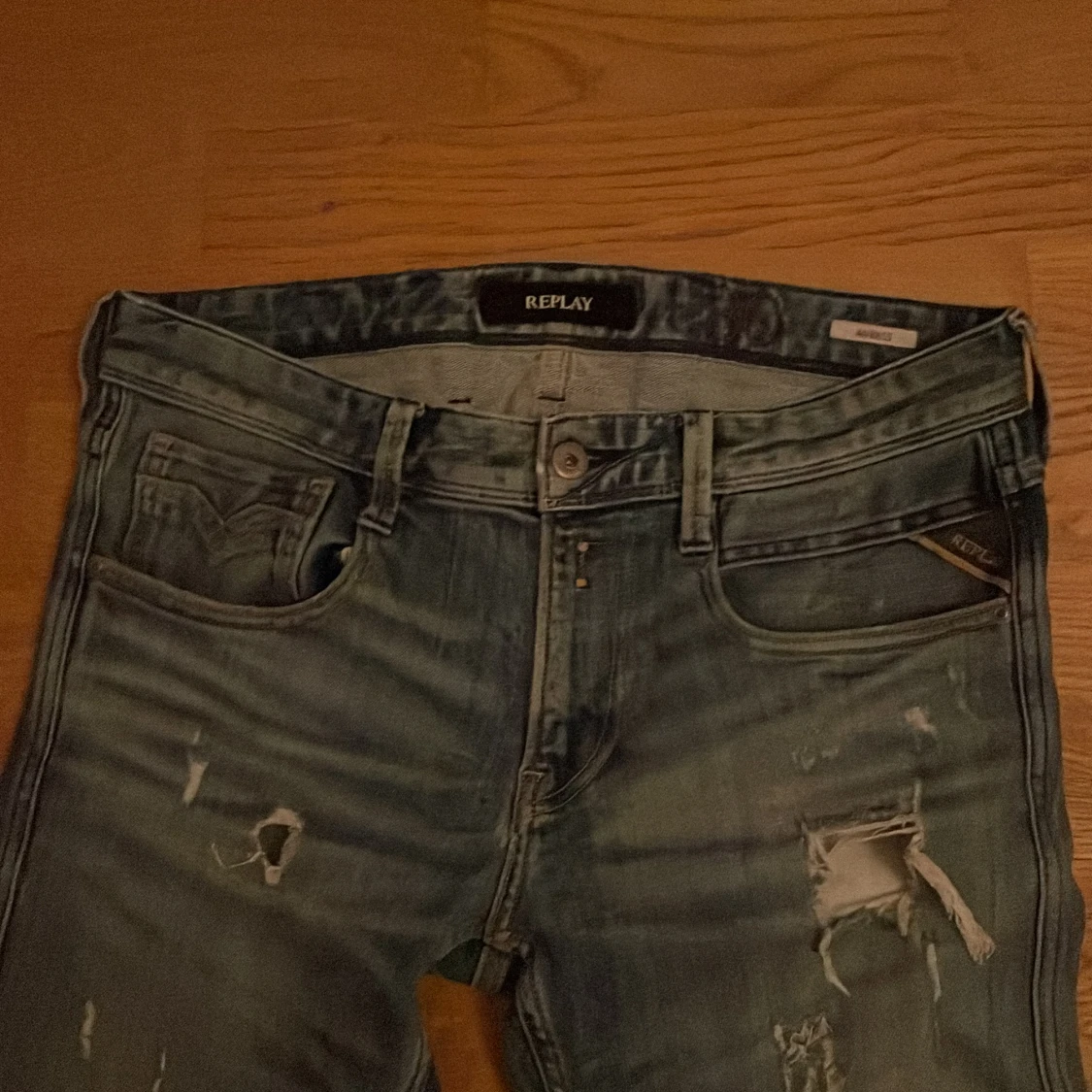 Snygga blå jeans från Replay med slitna detaljer och en straight passform. De har en klassisk femficksdesign och knappgylf. Perfekta för en avslappnad stil.