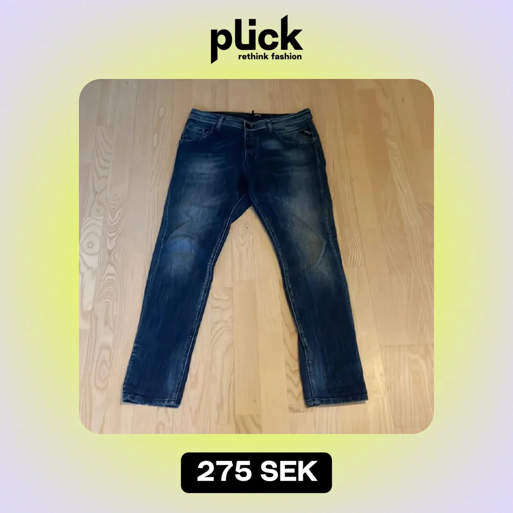 Säljer ett par snygga blå jeans från Replay i storlek 26. De har en klassisk femficksdesign och en bekväm passform. Perfekta för både vardag och fest!