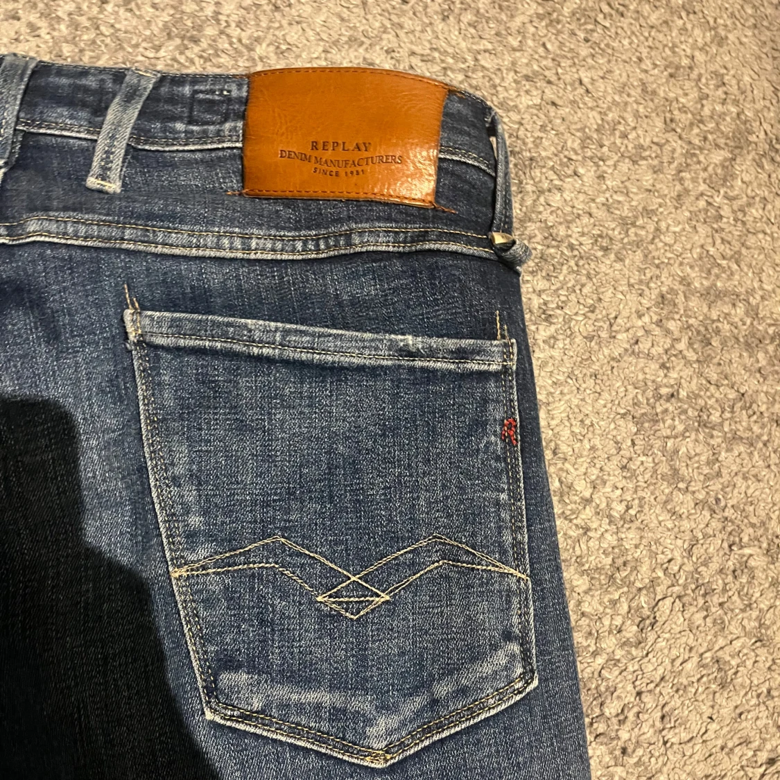 Blå jeans från Replay. Slitna