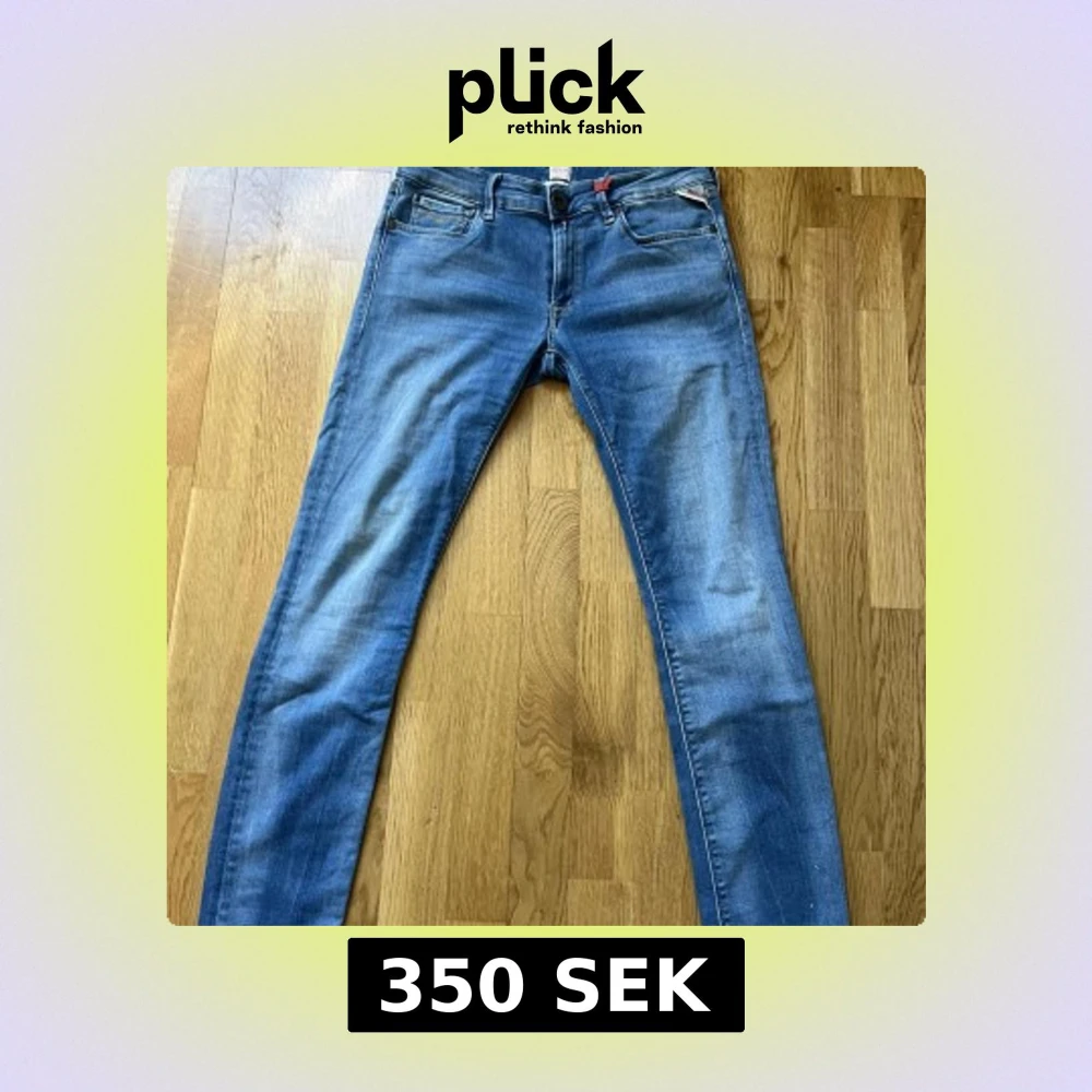 Snygga blå jeans från Replay med en klassisk femficksdesign och knappgylf. De har en diskret sliten look och en liten broderad logga på bakfickan.