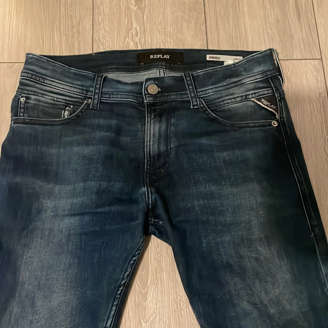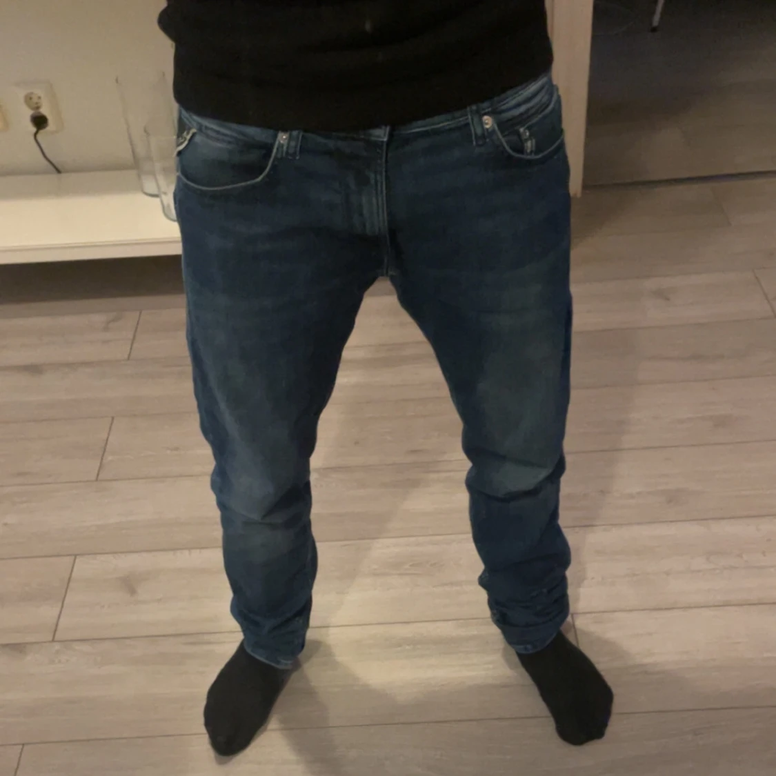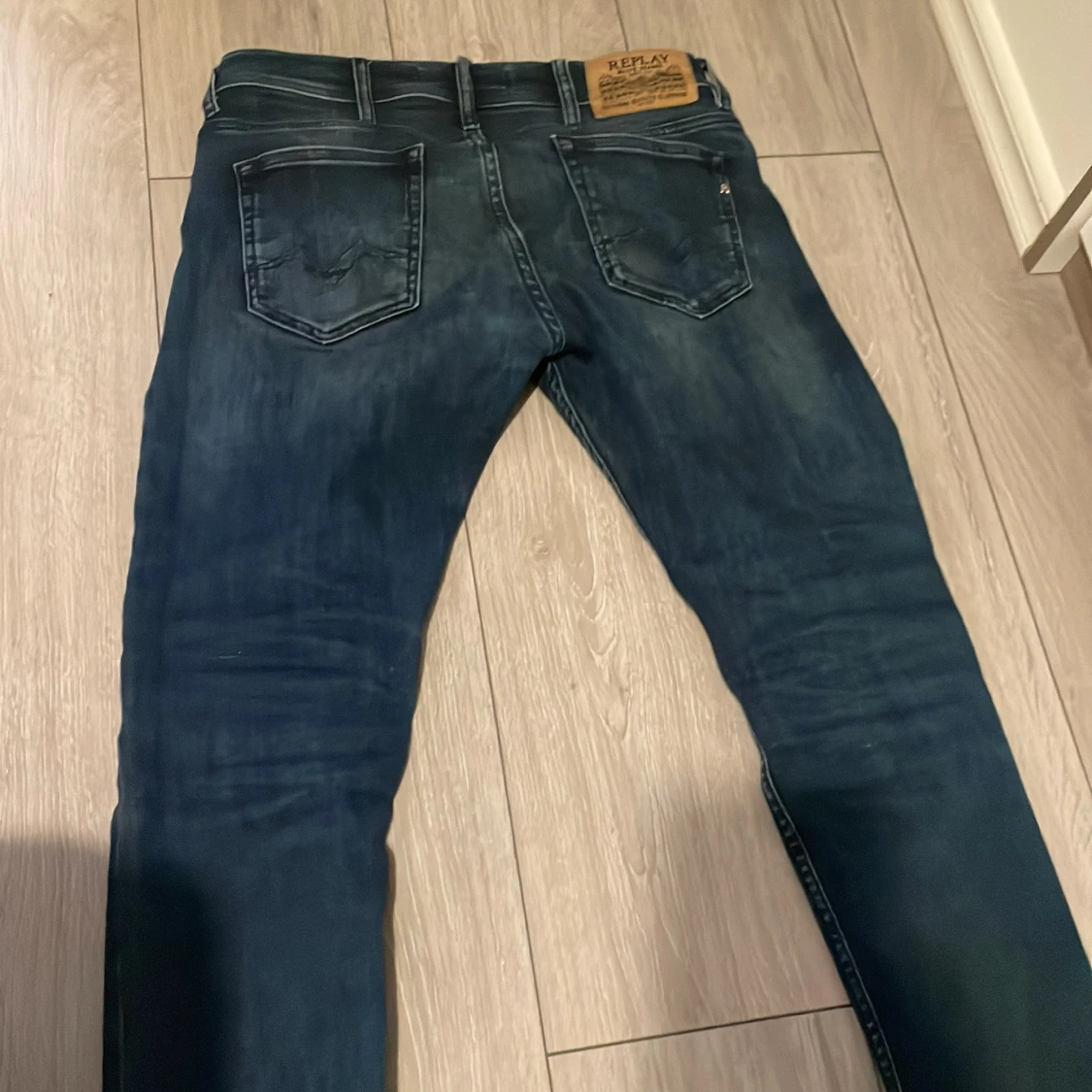 Snygga blå jeans från Replay med klassisk femficksdesign och en diskret logga på bakfickan. Jeansen har en modern passform och är perfekta för en avslappnad stil. De har en knappgylf och är tillverkade i ett slitstarkt denimtyg.