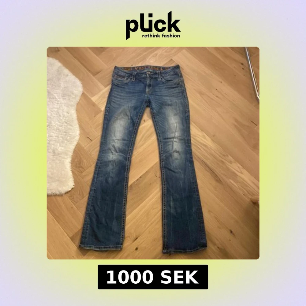 Snygga blå jeans från Rock Revival med broderade detaljer på bakfickorna. De är lowwaist samt bootcut. Skriv om du har någon fråga ☺️