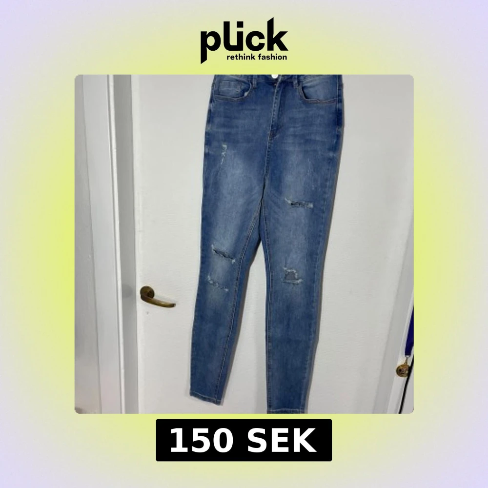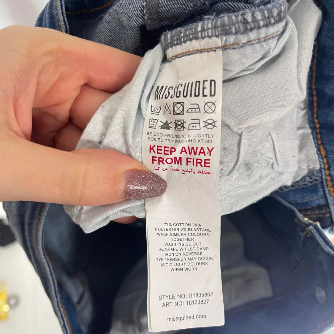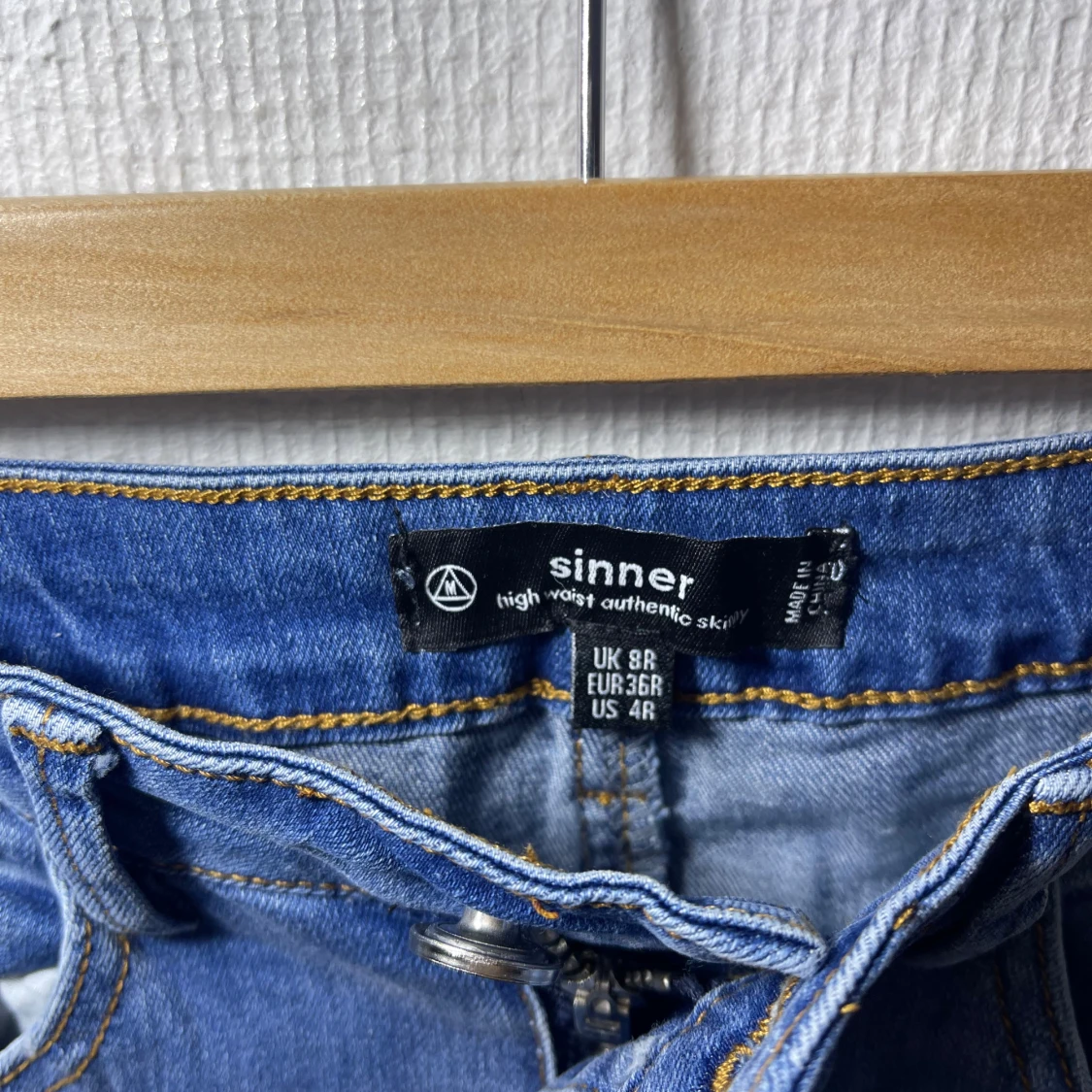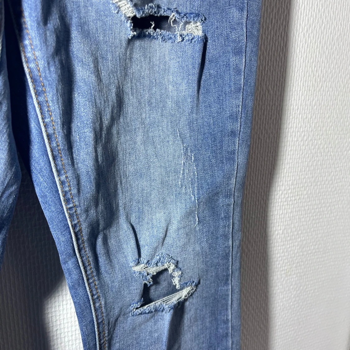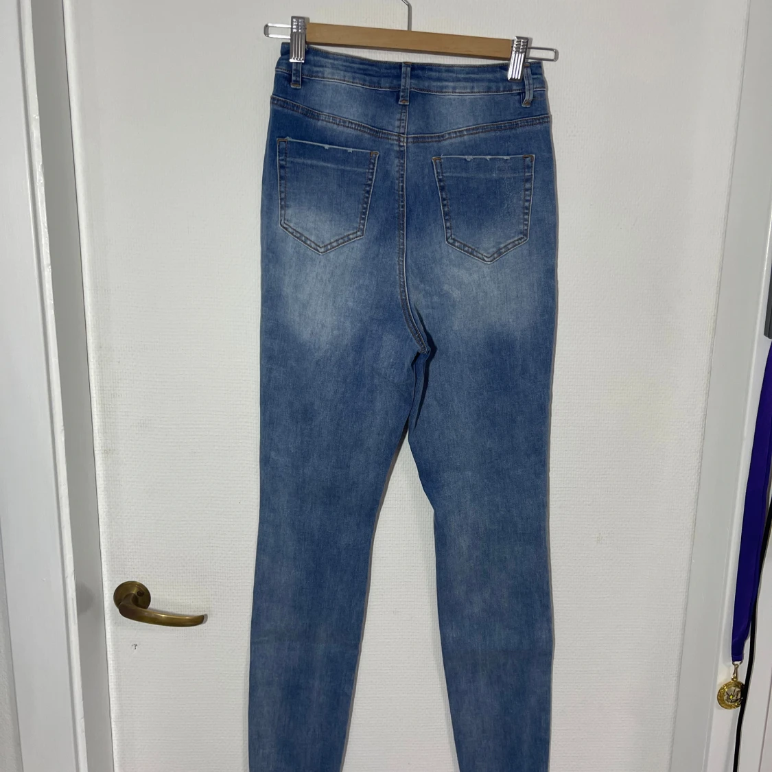 Snygga blå jeans från Missguided med hög midja och skinny fit. De har slitna detaljer på framsidan som ger en trendig look. Perfekta för en avslappnad stil.