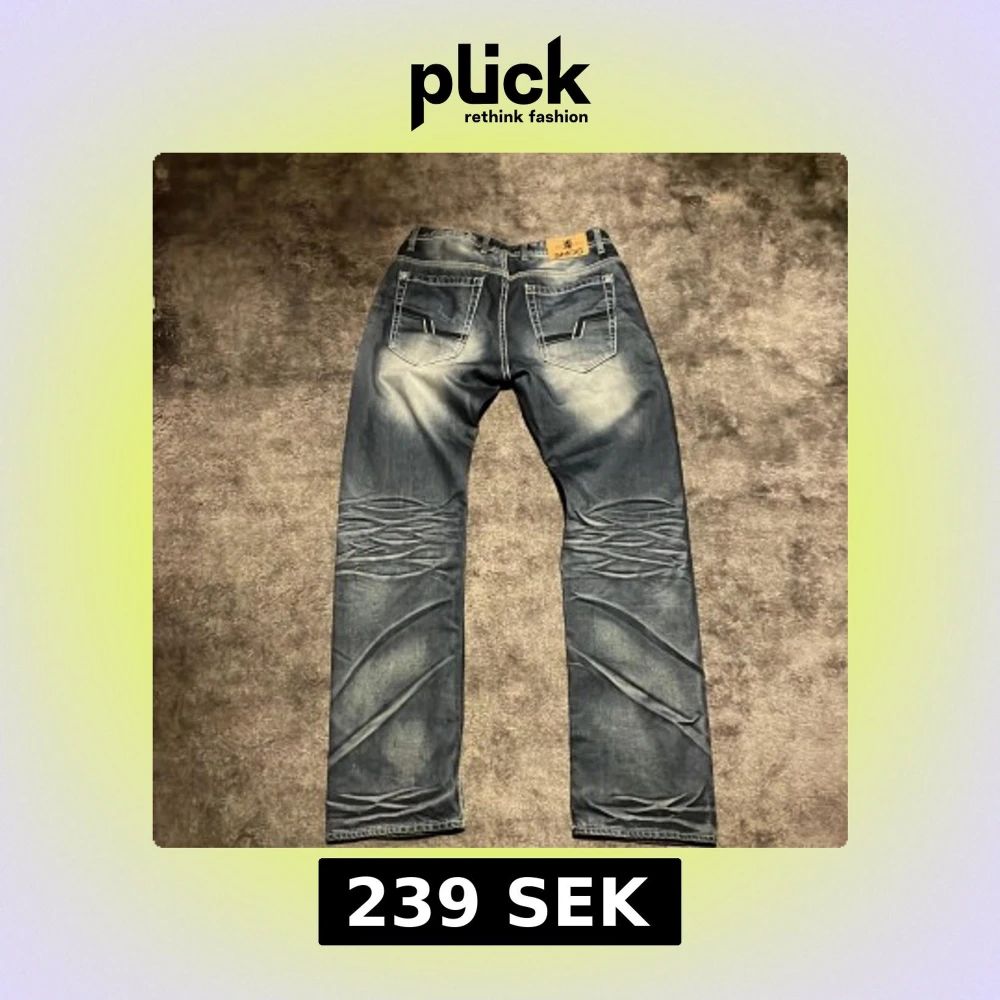 Säljer ett par snygga blå jeans från Smog med en cool tvättad look. De har klassisk femficksdesign och en bekväm passform. Perfekta för en avslappnad stil.