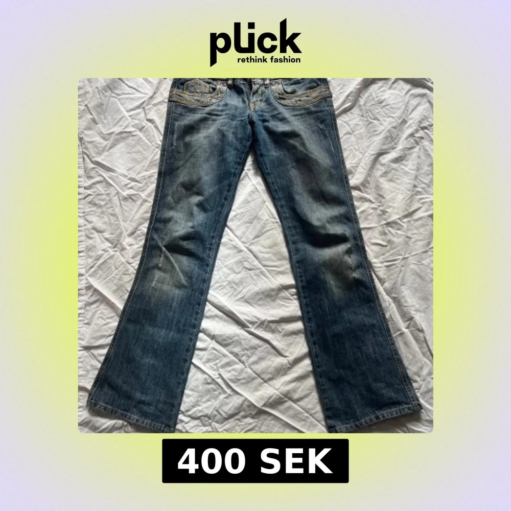 Snygga blå jeans från Take Two med bootcut-stil. De har en klassisk femficksdesign och slitna detaljer på bakfickorna. midjemått:37 innerbenslängd:80