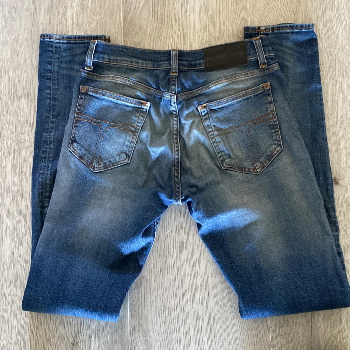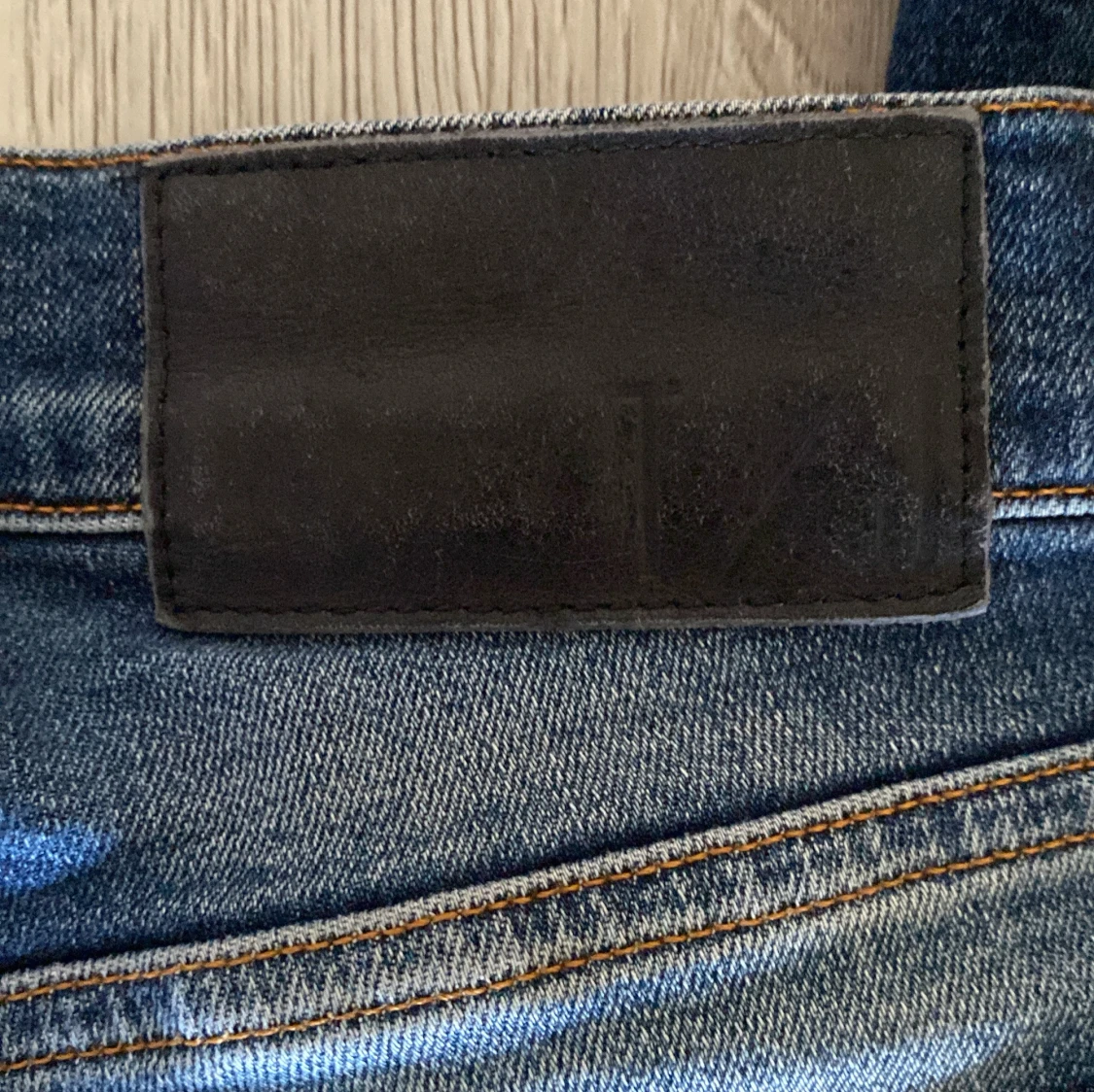 Snygga blå jeans från Tiger of Sweden med klassisk femficksdesign och slitningar framtill. Jeansen är slim fit och har orangea kontrastsömmar. Tillverkade i jeansmaterial som ger en autentisk känsla och passar perfekt till en avslappnad stil.
