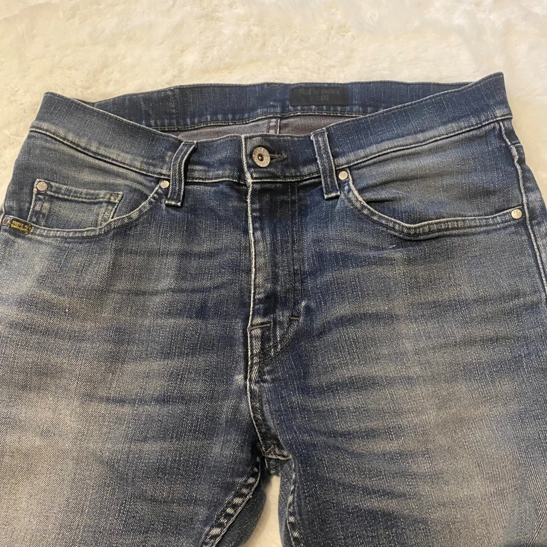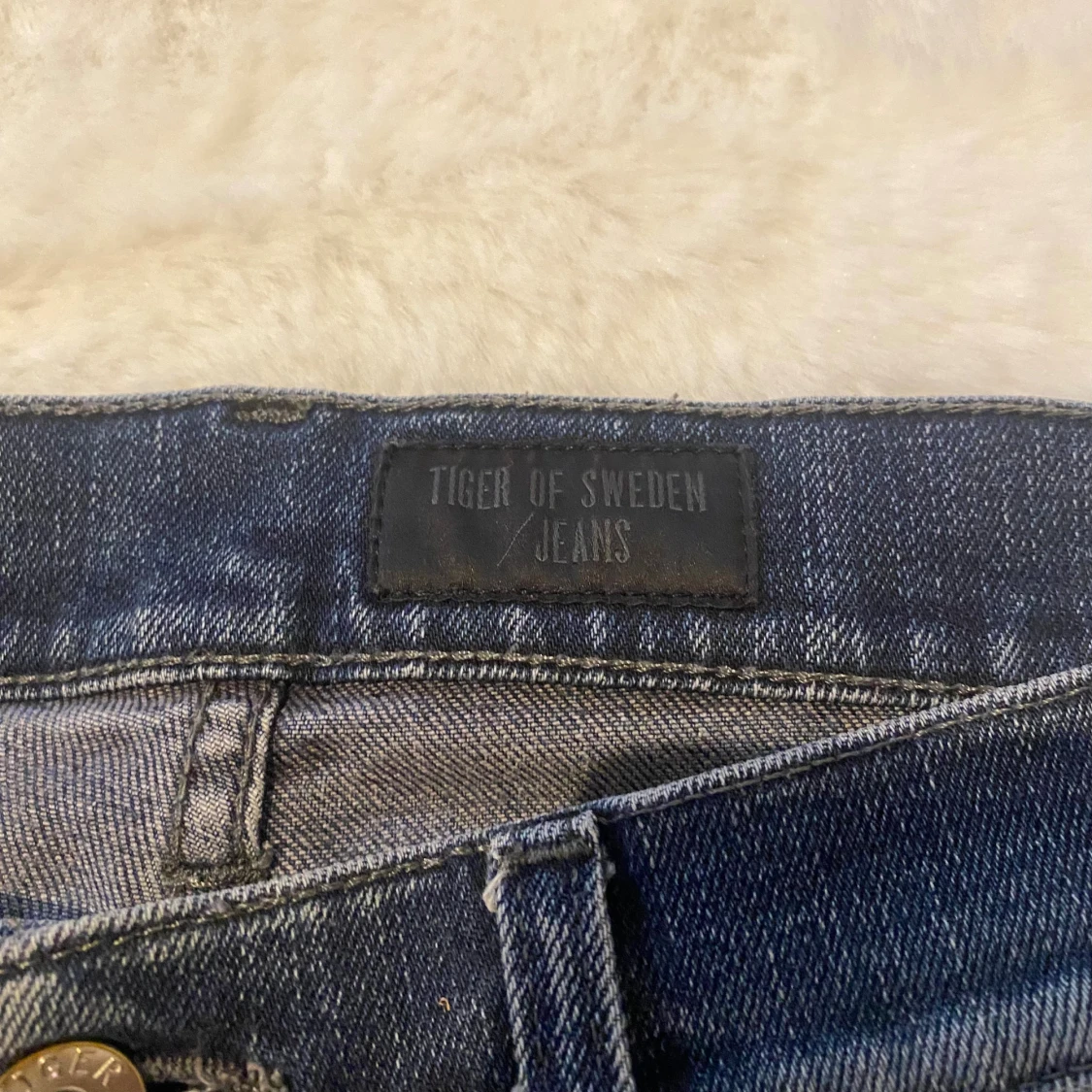 Snygga blå jeans från Tiger of Sweden med klassisk femficksdesign och diskreta slitningar. Jeansen har normal passform och raka ben, tillverkade i mjukt denimtyg. Perfekta för en stilren och avslappnad look.