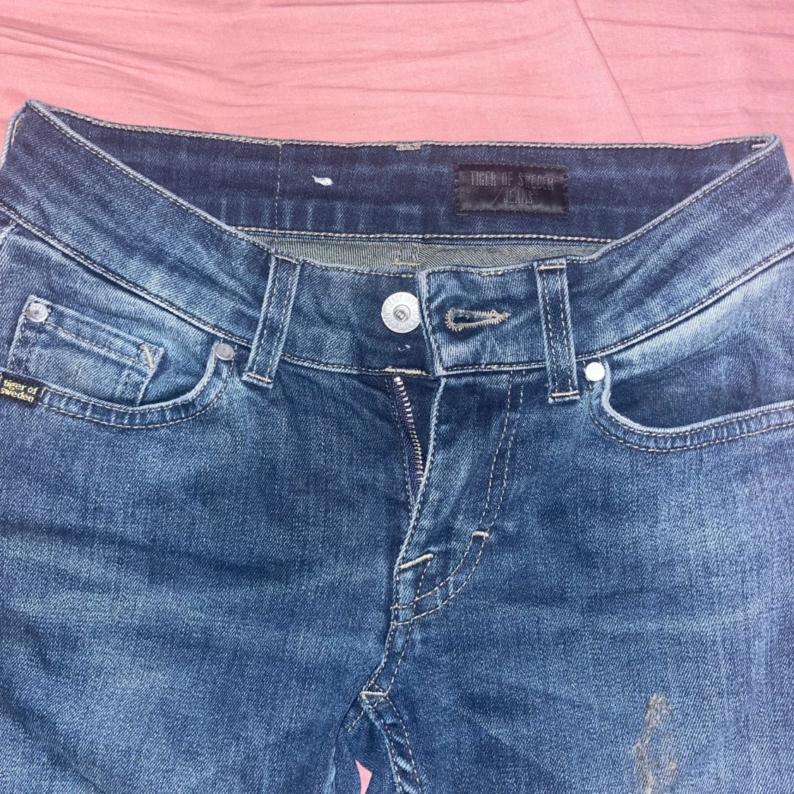 Snygga blå jeans från Tiger of Sweden med klassisk femficksdesign och ljusa kontrastsömmar. Tillverkade i italienskt premiumdenim från Candiani. Jeansen har normal passform och utsvängda ben, perfekt till en avslappnad stil. Säljer då dem inte kommer till användning 💗😇