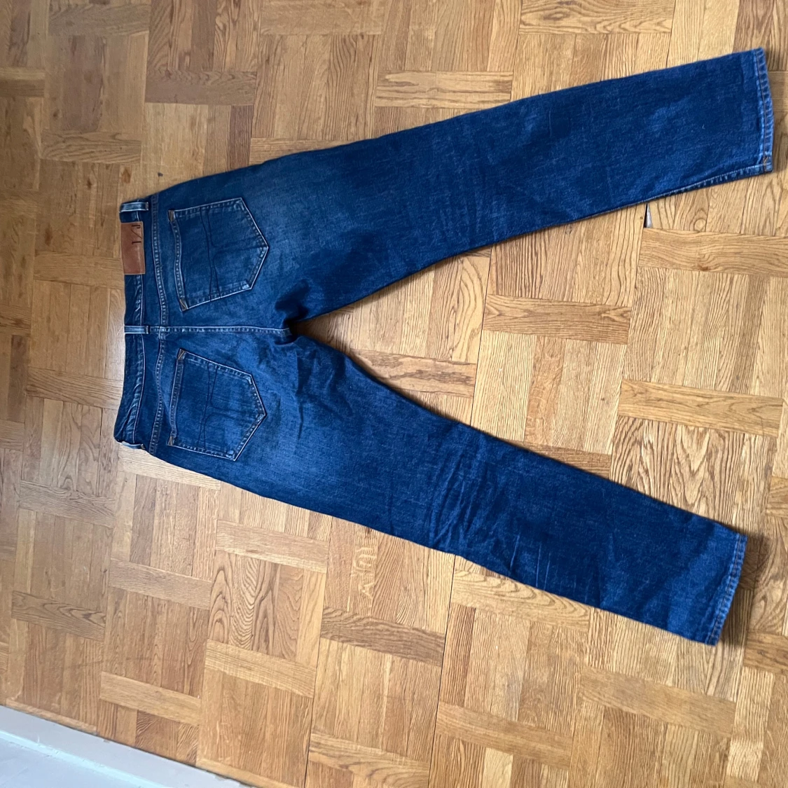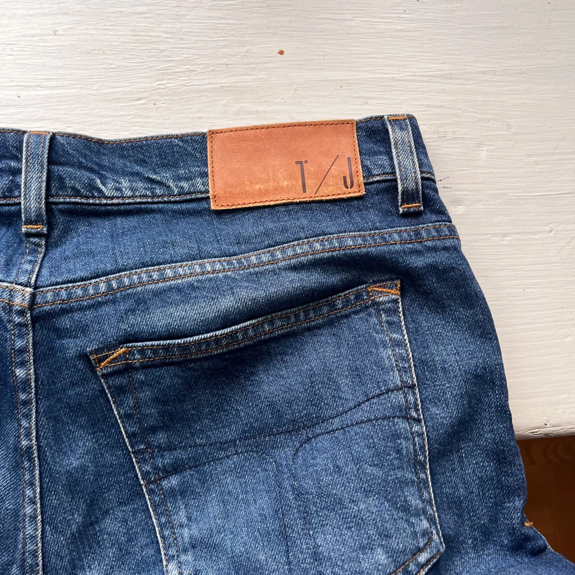 Säljer ett par klassiska blå jeans från Tiger of Sweden modell Evolve. Jeansen har raka ben, fem fickor och snygga kontrastsömmar. Tillverkade i Italien i slitstarkt bomullsjeans-tyg. Perfekta för dig som gillar en tidlös och clean look.