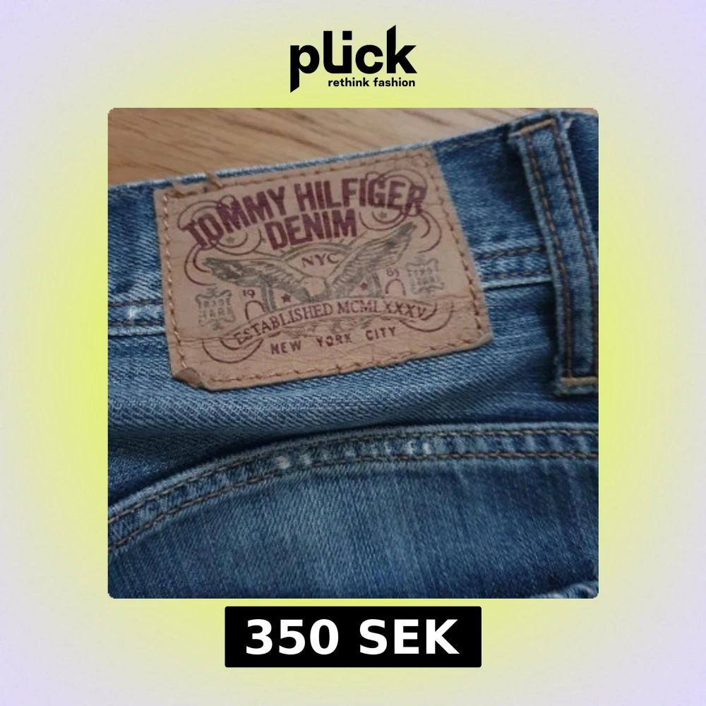 Snygga blå jeans från Tommy Hilfiger Denim med klassisk femficksdesign och coola slitningar framtill och baktill. Jeansen har röd broderad logga på insidan av linningen och kontrastsömmar. Perfekta för en avslappnad och trendig look.