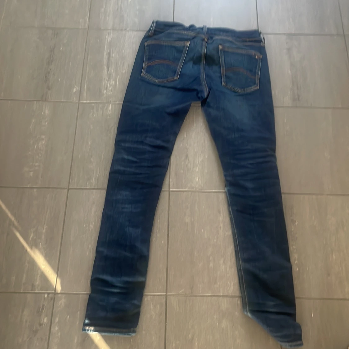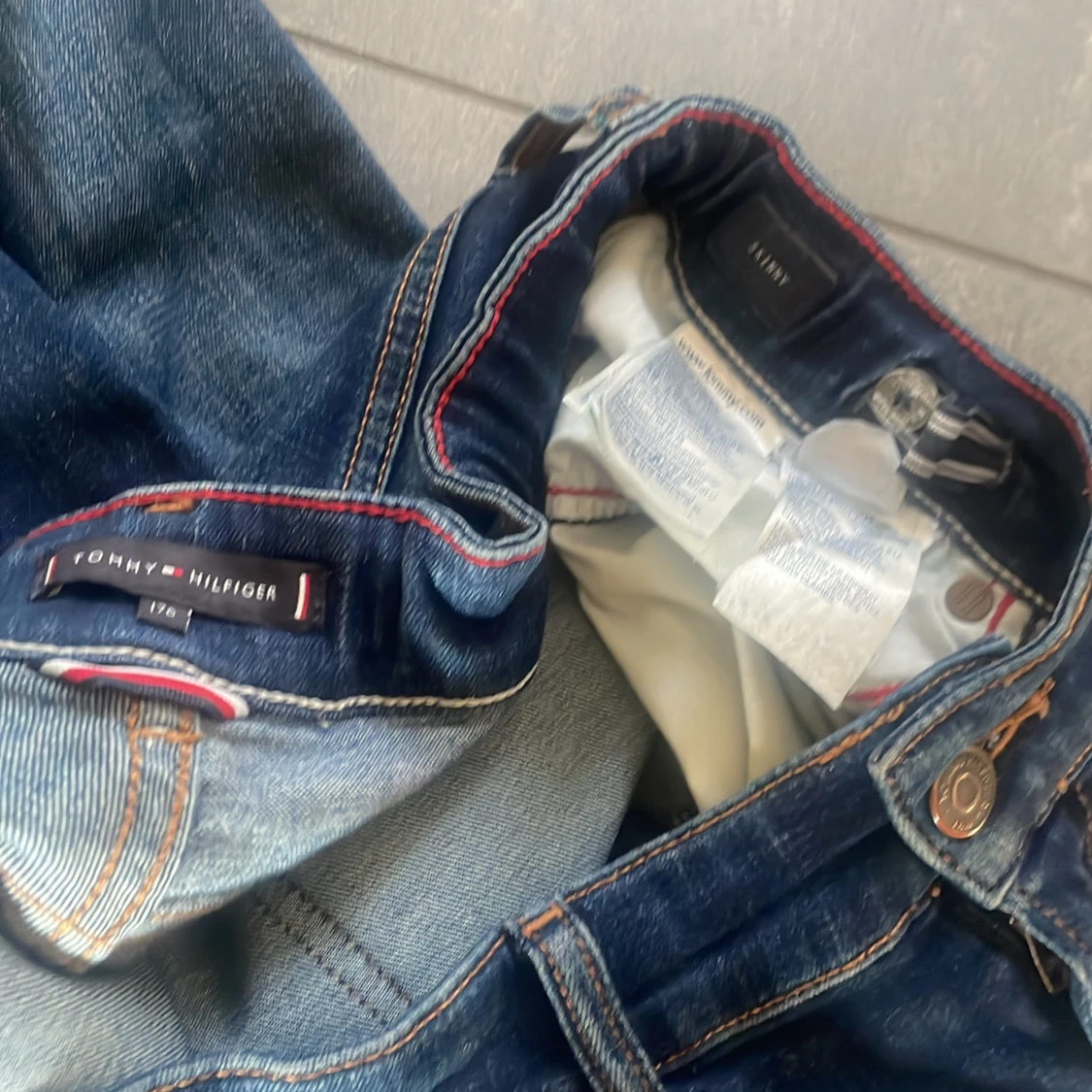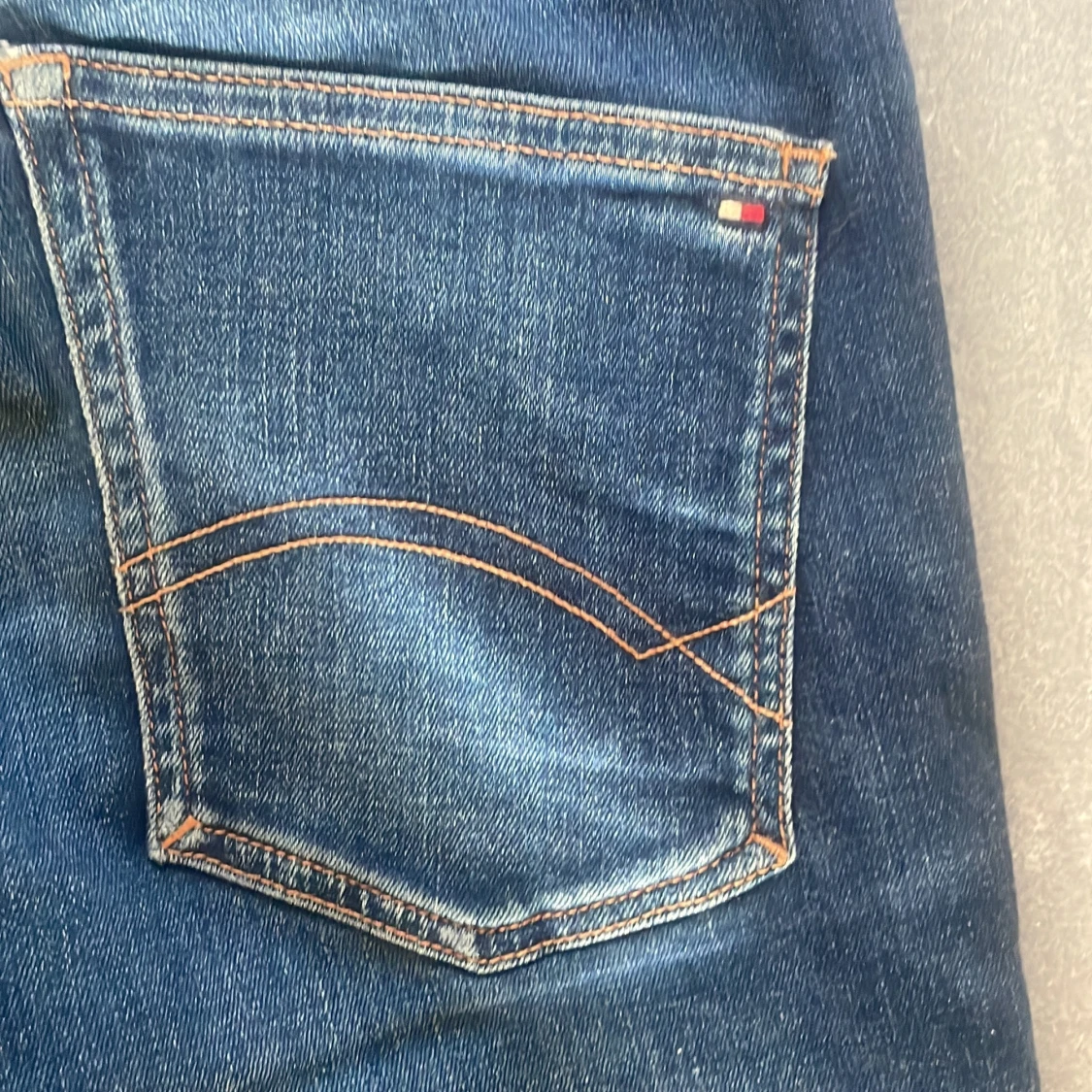 Snygga blå jeans från Tommy Hilfiger med klassisk femficksdesign och subtila slitningar. De har en normal passform och är perfekta för en avslappnad stil. Märkesdetaljer syns på bakfickan och insidan av linningen. Nypris 1700 modell: 179cm och 65kg