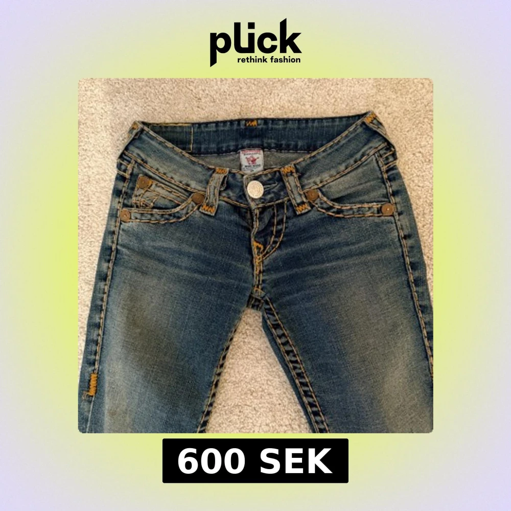 Snygga blå jeans från True Religion. De är lågmidjade med en rak/boot cut passform. Bra skick förutom en liten slitning vid badfickan som inte syns.