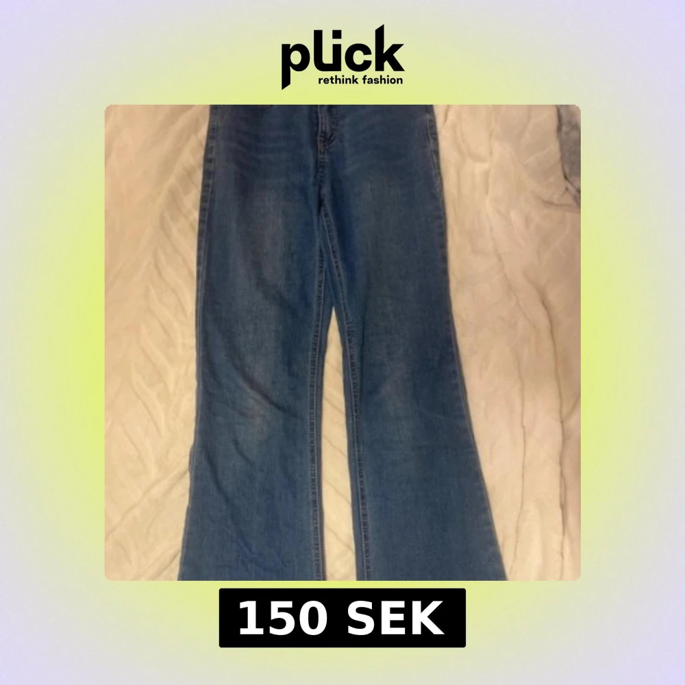 Säljer ett par blå bootcut jeans från UNIQ och är tillverkade i denim. Perfekta för en avslappnad stil.