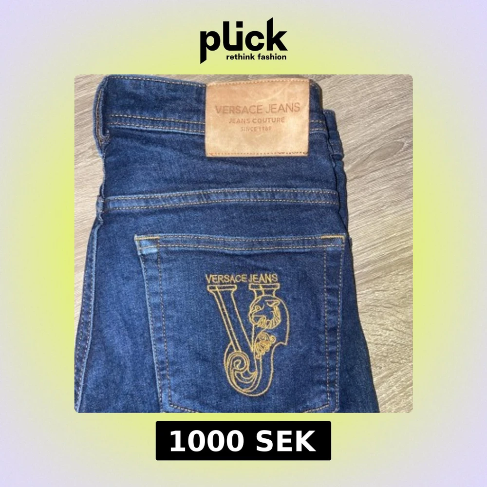 Snygga blå jeans från Versace Jeans Couture med ett stilrent broderat V på bakfickan. Jeansen har en klassisk design med en läderpatch på baksidan av midjan. Perfekta för en trendig look.