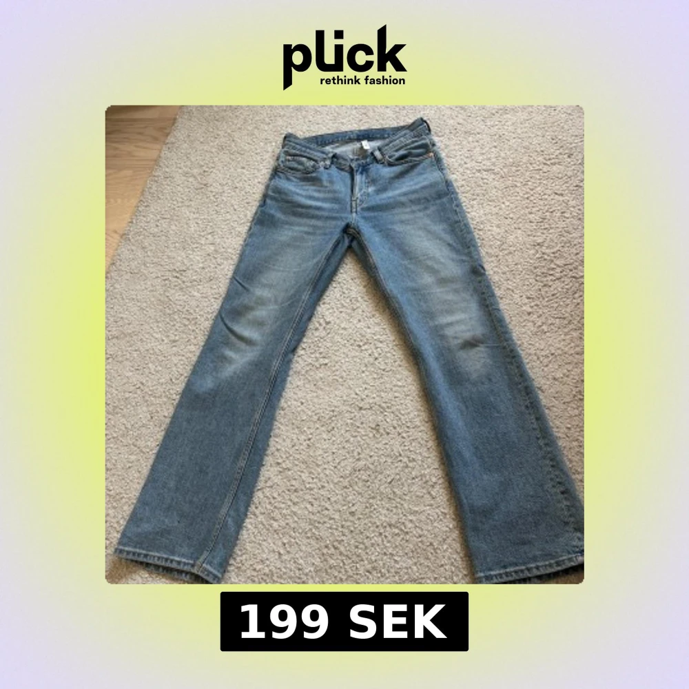 Säljer ett par klassiska blå jeans från weekday. De har en bootcut passform och är knappt använda så därför ett väldigt bra skick. De ör även i modellen TWIG