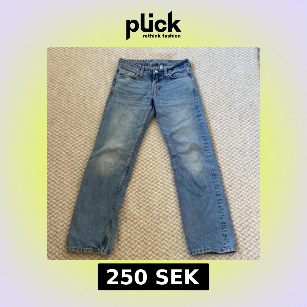 Säljer ett par klassiska blå jeans från Weekday. De har en rak passform och är tillverkade i denim. Perfekta för en avslappnad stil. Säljer då dem är för korta för mig. Jag är 160,5.