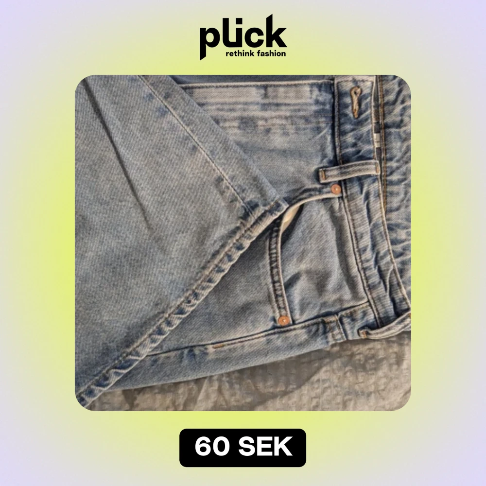 Ett par blå jeans från Weekday med en hög midja och en bred passform. köpta förra året
