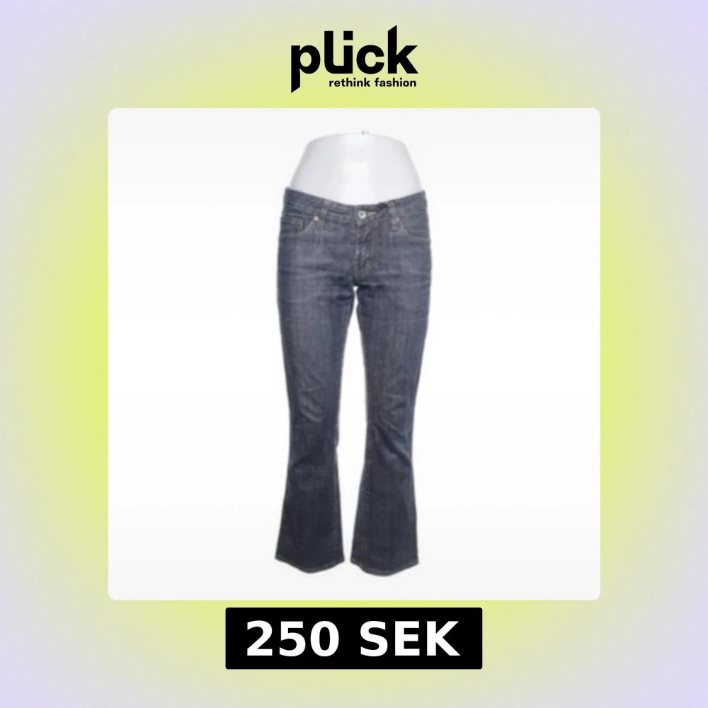 Snygga blå jeans från WESC med klassisk femficksdesign och subtila sömdetaljer på bakfickorna. Lågmidjade och utsvängda nedtill. Midjemåtten är 78cm ungefär, innerbenslängden 72cm och grenmåttet 19cm!