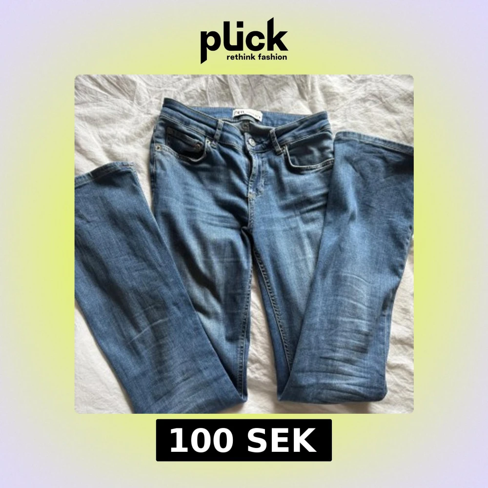Snygga blå jeans från Zara som sitter lite tajtare uppåt på bena som sedan går ut med längden. Jeansen är lågmidjade 🩵🩵