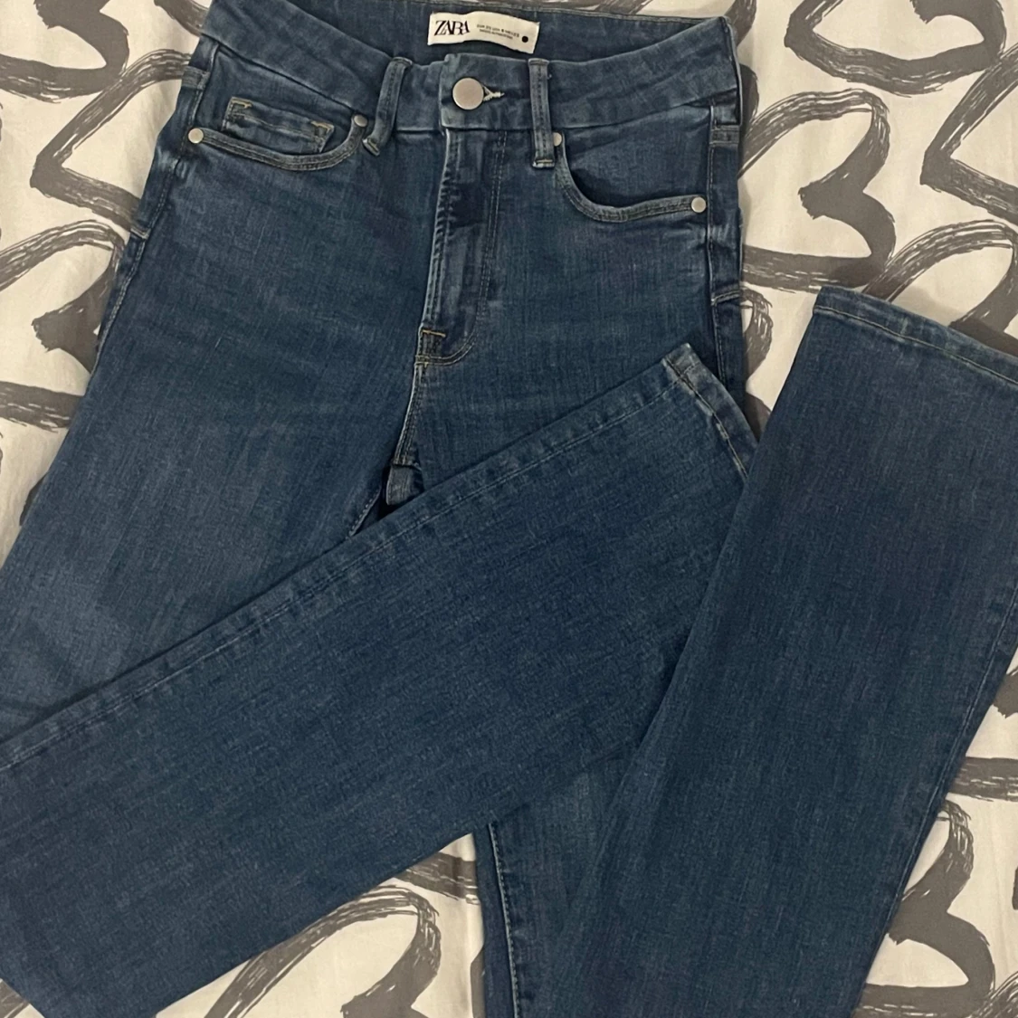 Säljer ett par snygga blå jeans från Zara i storlek XS. De är högmidjade och har en tight passform som framhäver figuren. Perfekta för både vardag och fest! 🥳