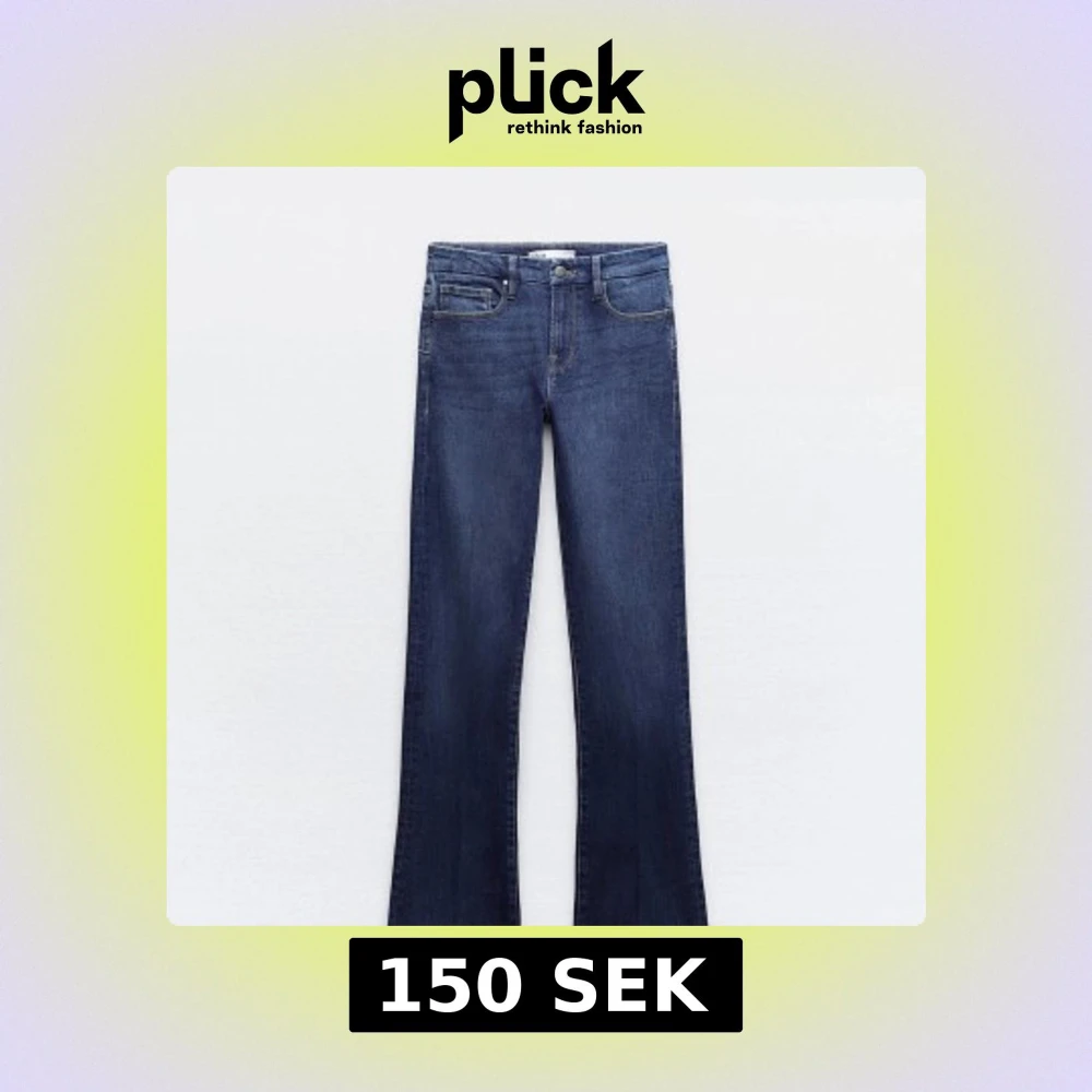 Snygga blå jeans från Zara med klassisk femficksdesign och knappgylf. Perfekta för en avslappnad stil. De har en bootcut-stil som ger en retro känsla. Färgen är svår att se i bilderna tagna av mig men skulle säga att färgen är mer lik den på bilden från deras hemsida😊