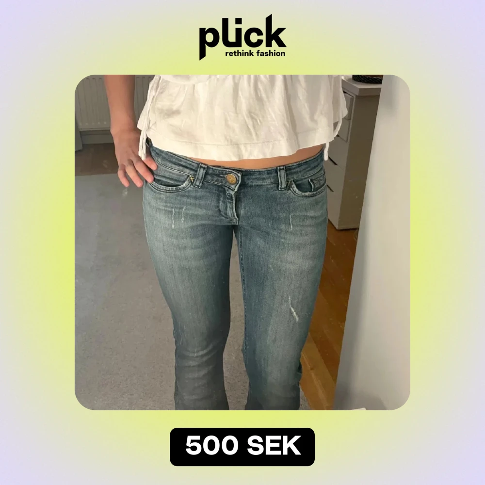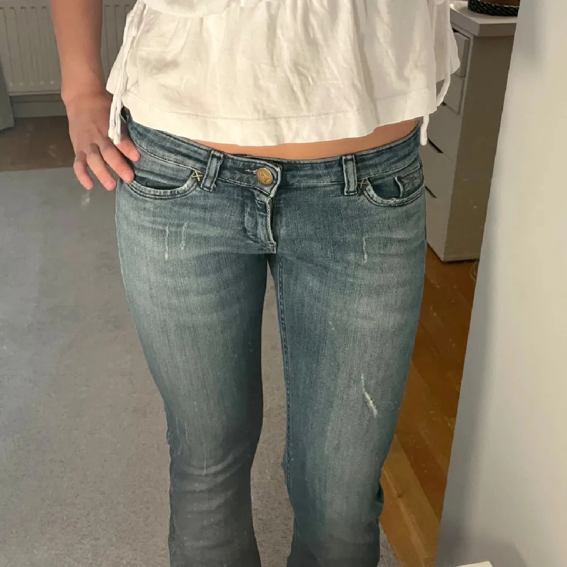 Säljer ett par snygga blå jeans i bra skick. De är lågmidjade och har en tight passform som framhäver figuren. Perfekta för både vardag och fest! 🦋