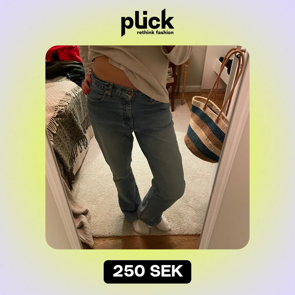 Säljer ett par blå jeans i loose fit. De är lågmidjade och har en avslappnad stil, perfekt för vardagsbruk. Jeansen är i bra skick och passar till de flesta outfits. Perfekta för en casual look!