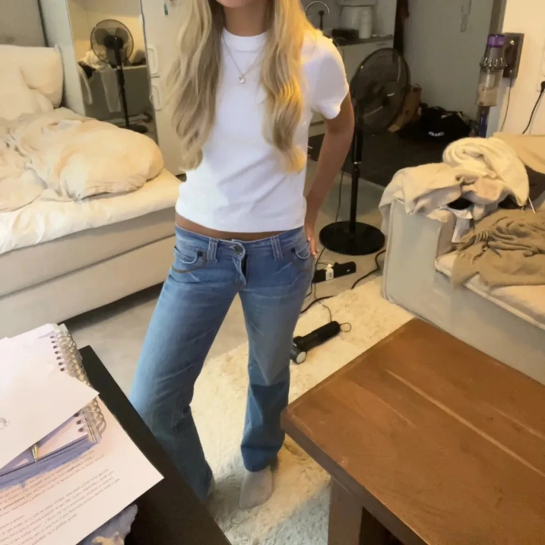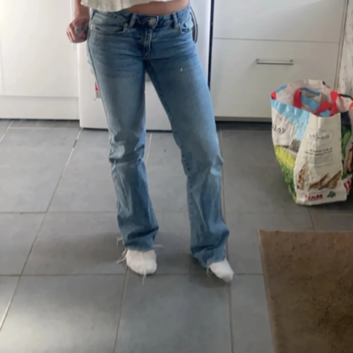 Blå jeans med bootcut