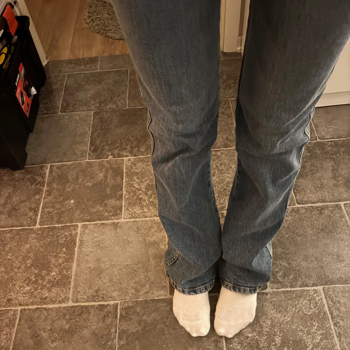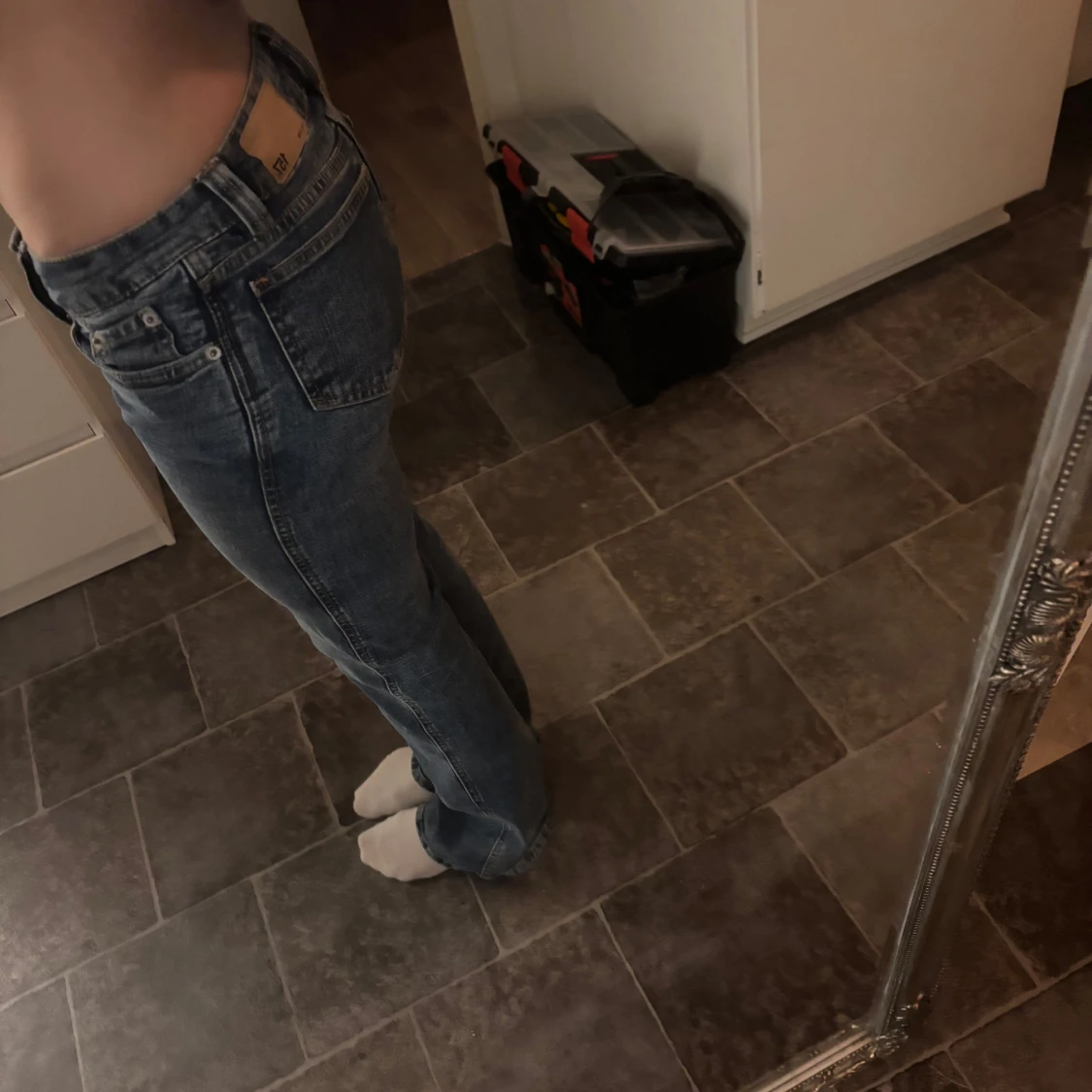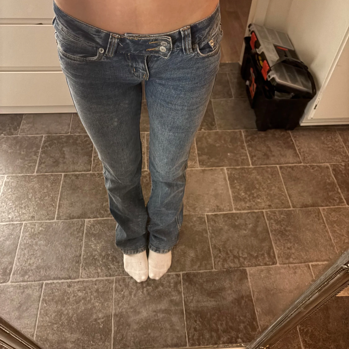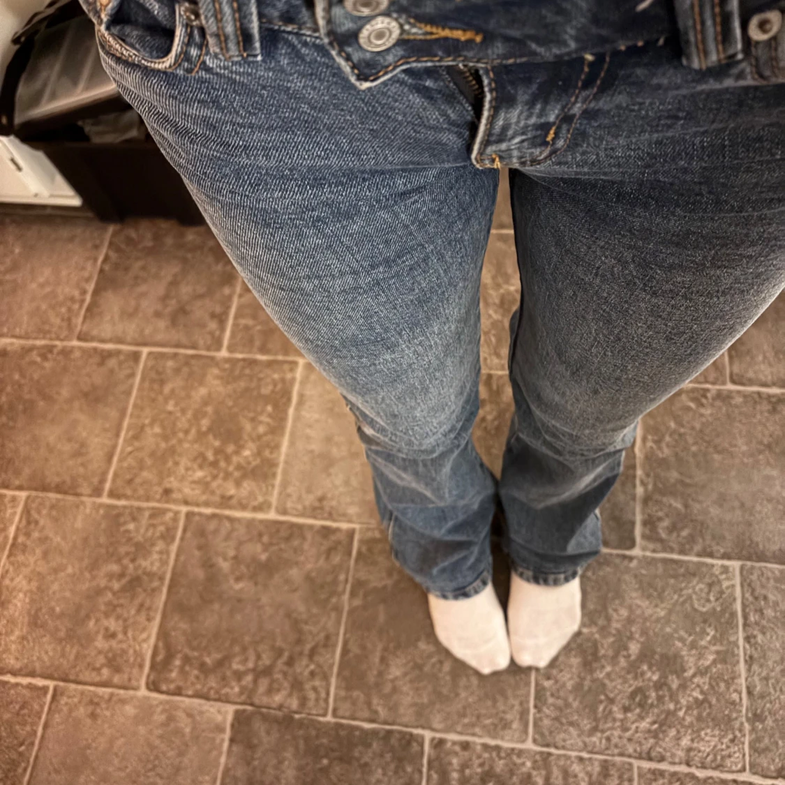 Säljer ett par klassiska blå jeans med bootcut. De har två knappar och dragkedja framtill. Använda fåtal gånger.