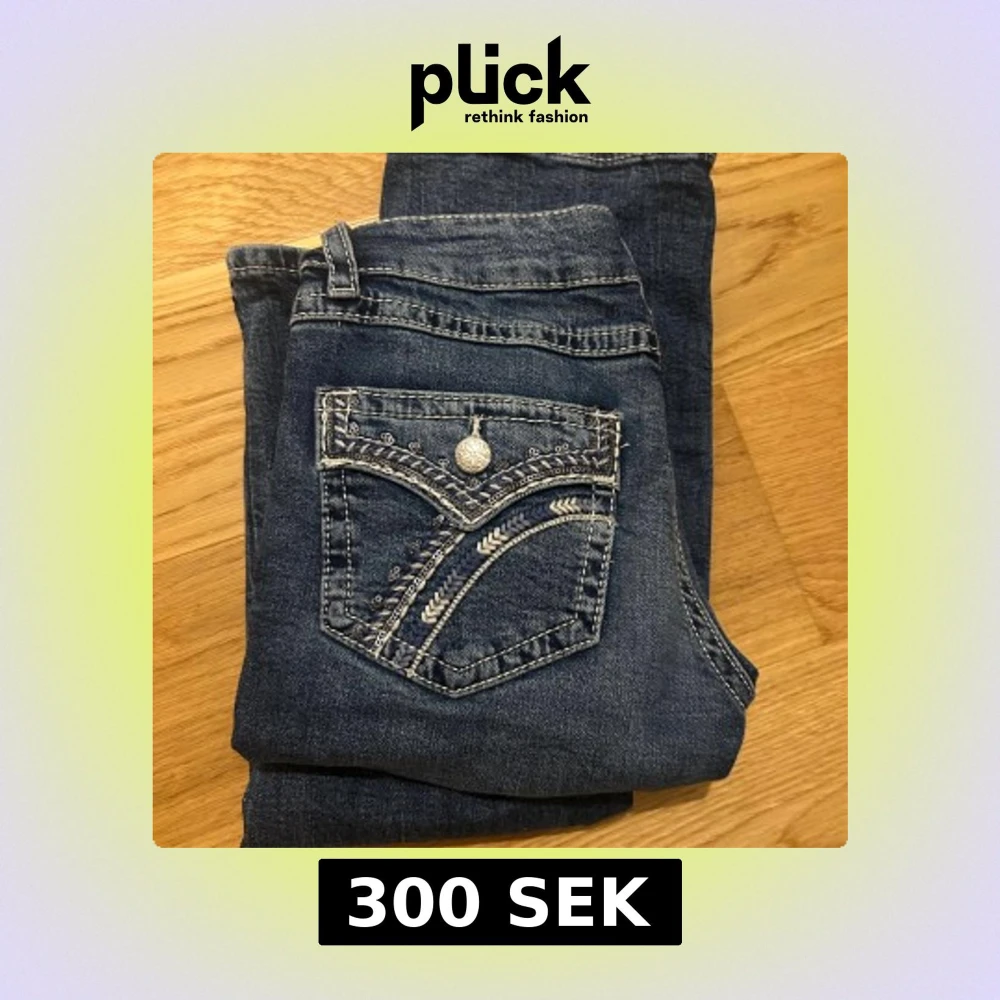 Säljer dessa jeans i storlek 170 från Gina Young 💗! Aldrig använda, men har dock några trådar på ena fickan som har gått upp, går att se på en av bilderna. (Det var så när jag köpte dom). Fickorna på rumpan är vanliga fickor med detaljer.