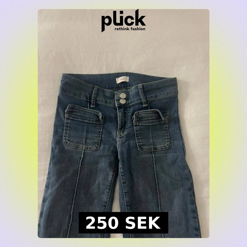 Snygga blå jeans från Nelly med två stora framfickor och dubbla silverknappar i midjan. Jeansen är bootcut!