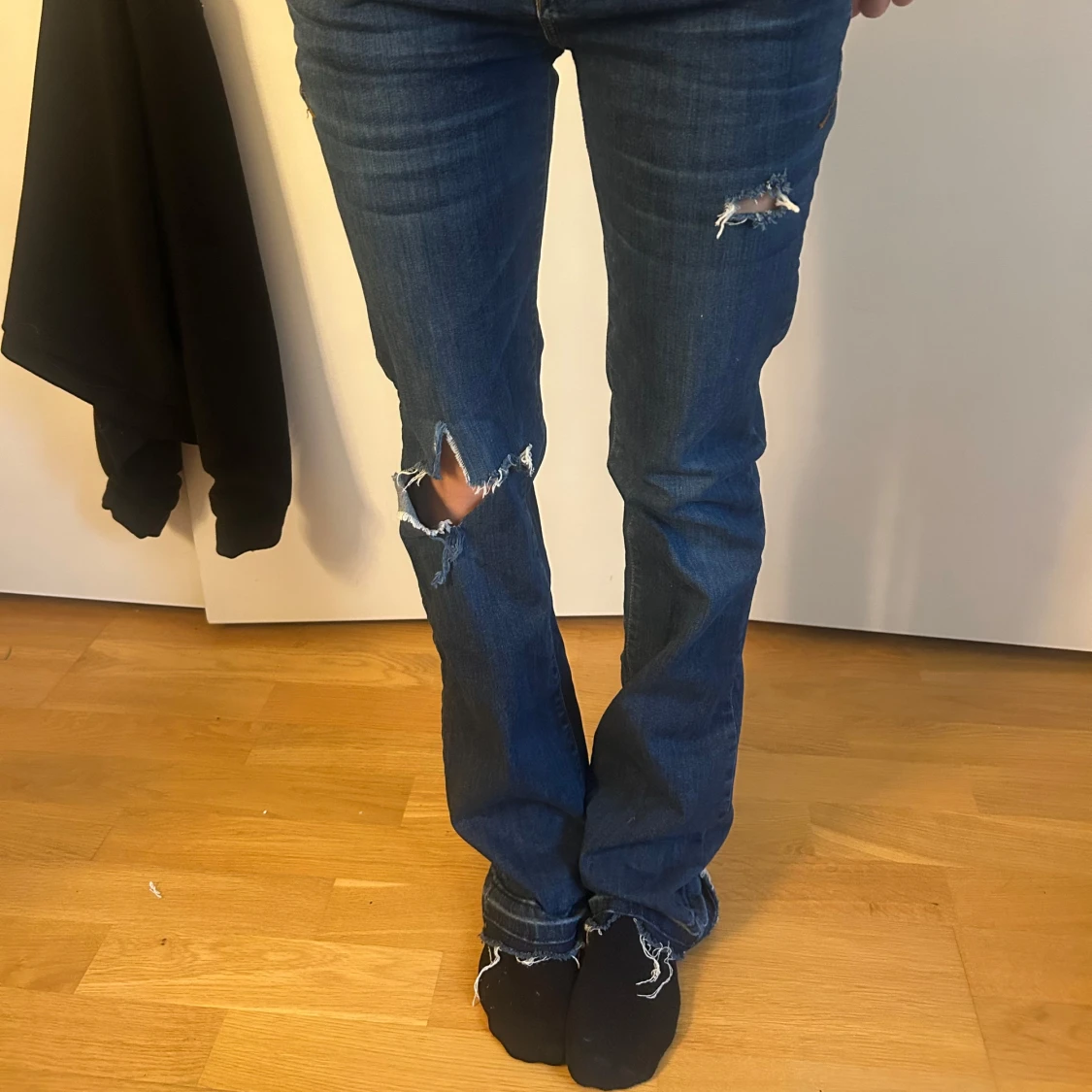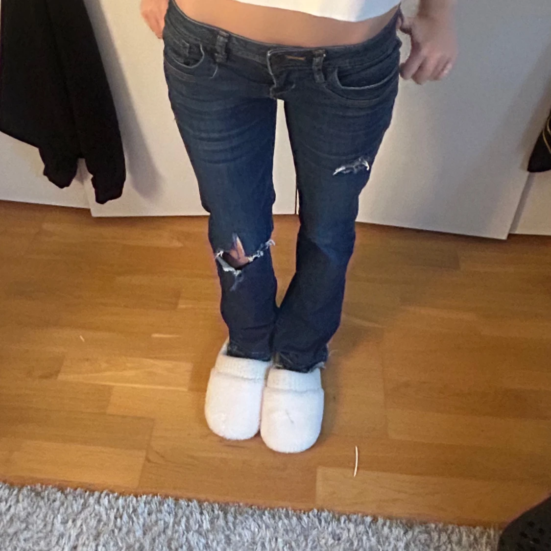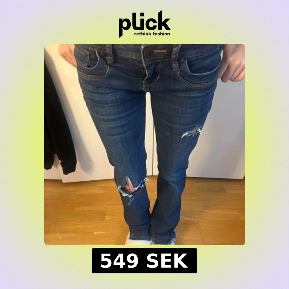 Snygga blå jeans från LTB med slitningar på knäna och låren. De har en lågmidjad passform. Väldigt trendiga och storlek 25/32
