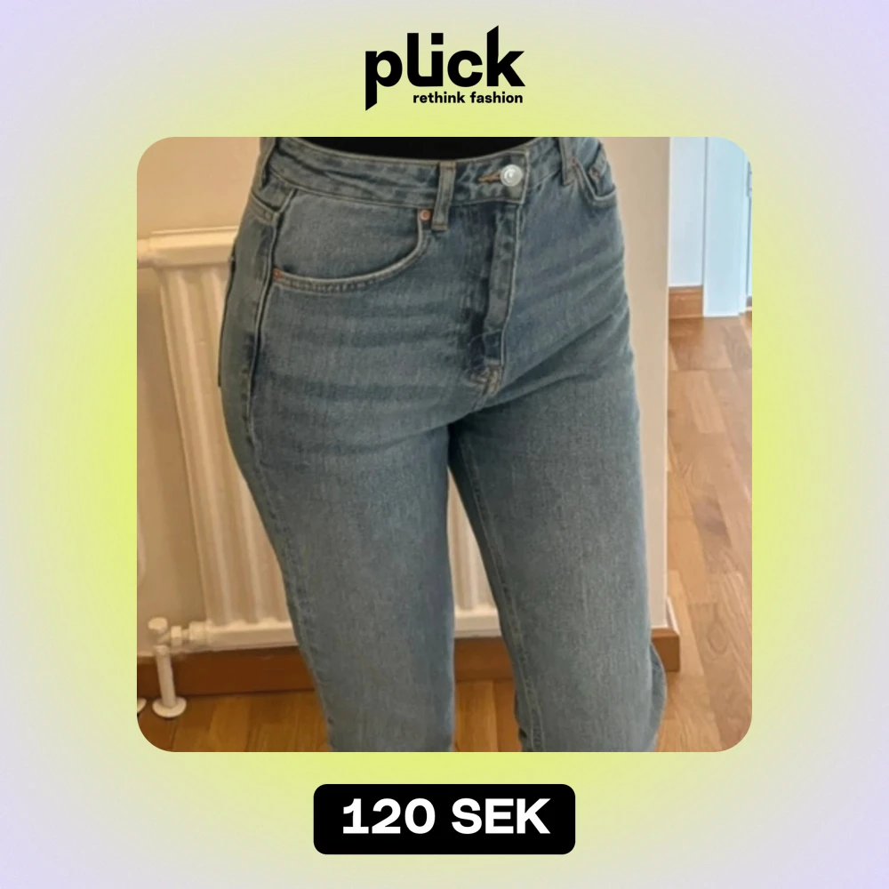 Säljer ett par snygga blå jeans med hög midja och slit. Från gina tricot, storlek XS.