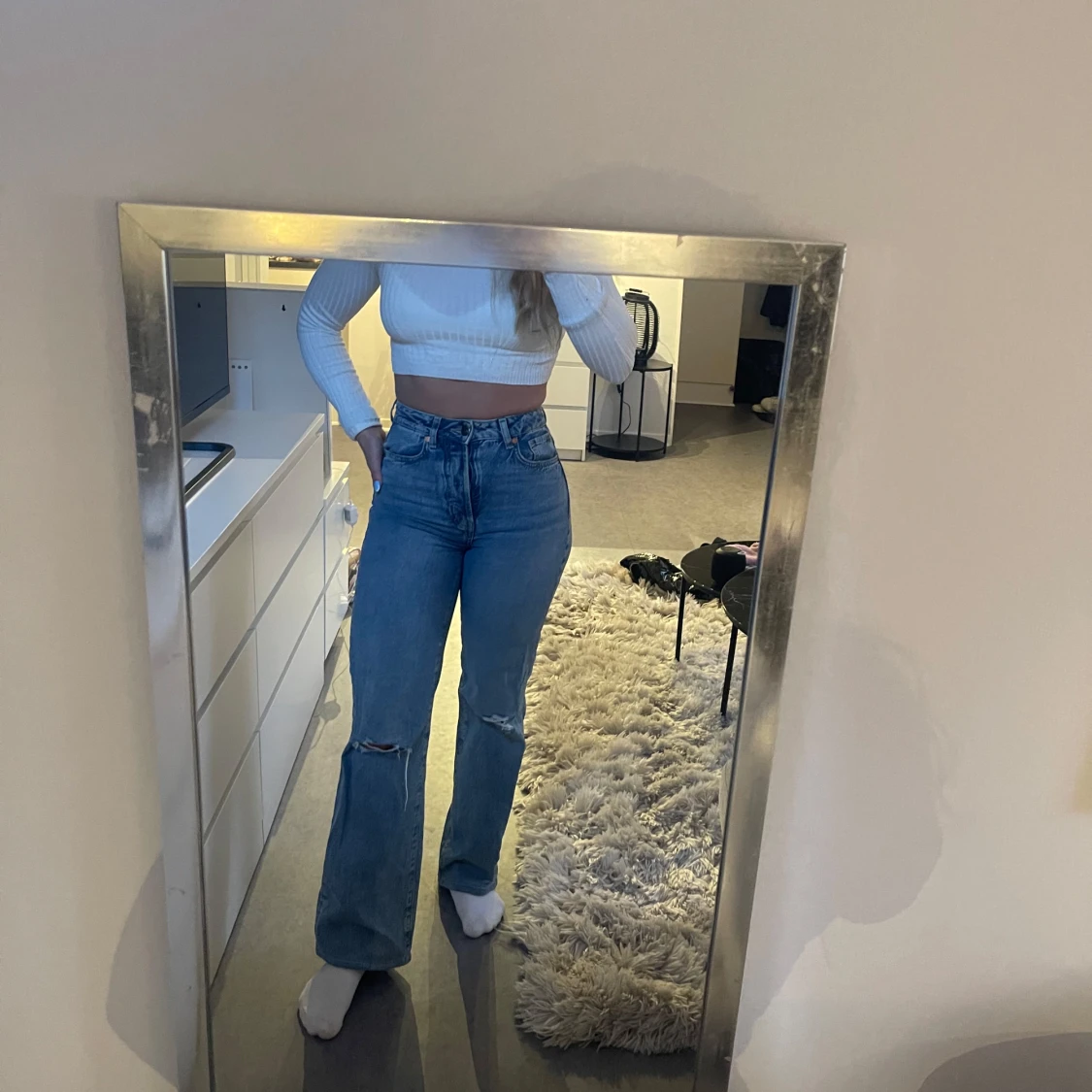 Säljer ett par snygga blå jeans med hög midja. Endast använda ett fåtal gånger. Nypris 599kr