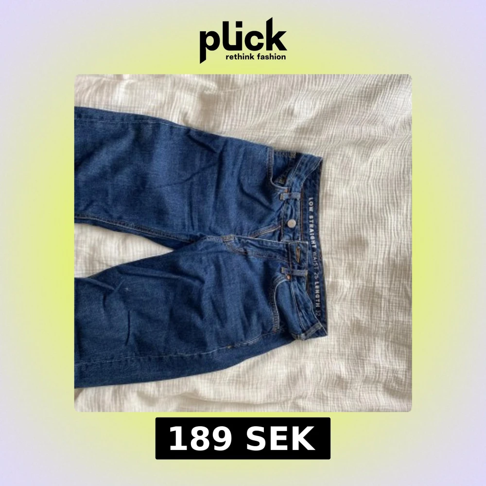 Säljer ett par klassiska blå jeans med låg midja och raka ben. Jeansen har fem fickor, knapp- och dragkedjegylf samt tydliga sömmar. Perfekta för en avslappnad stil.