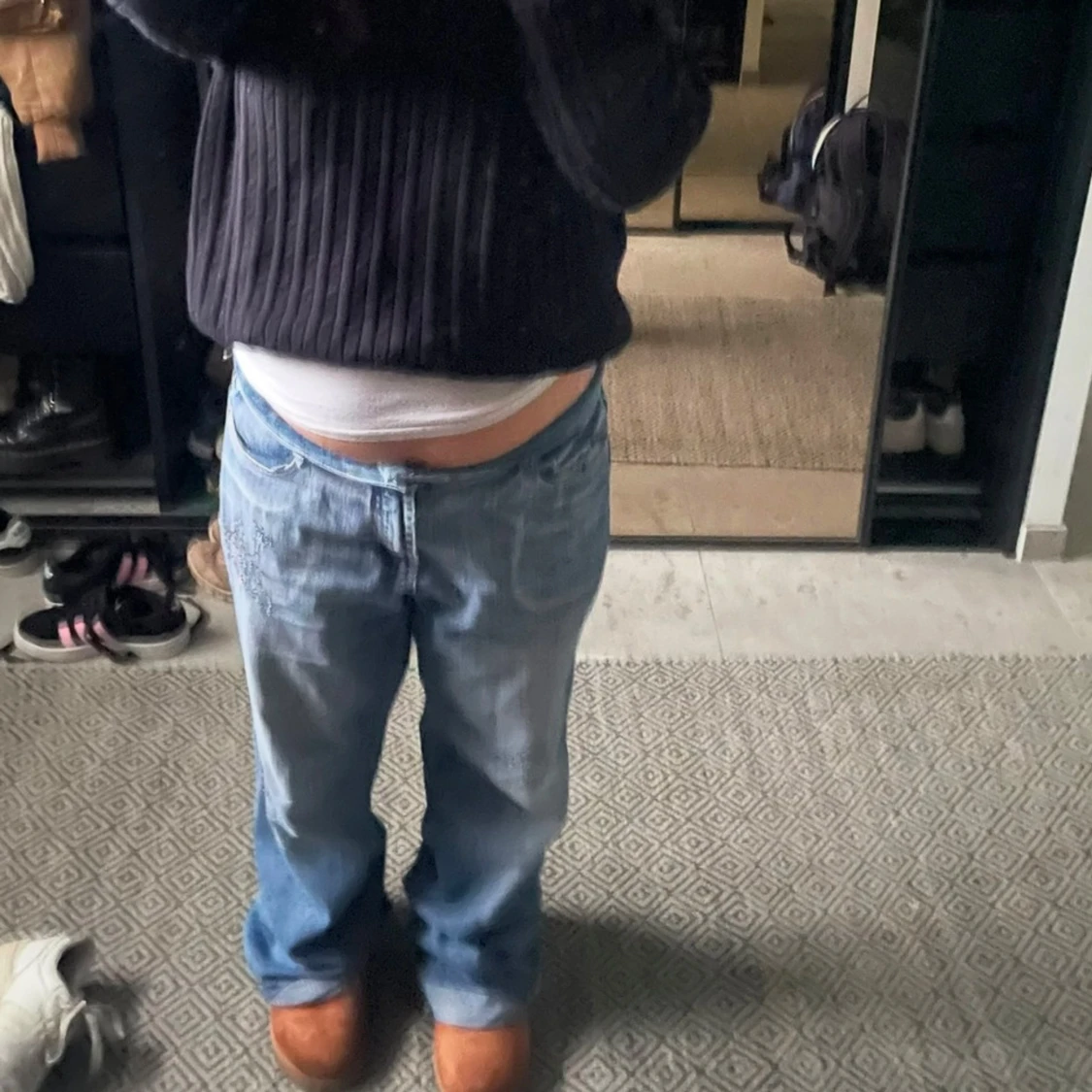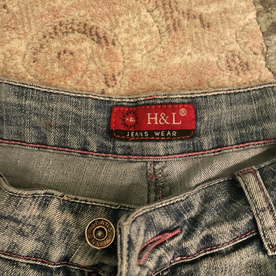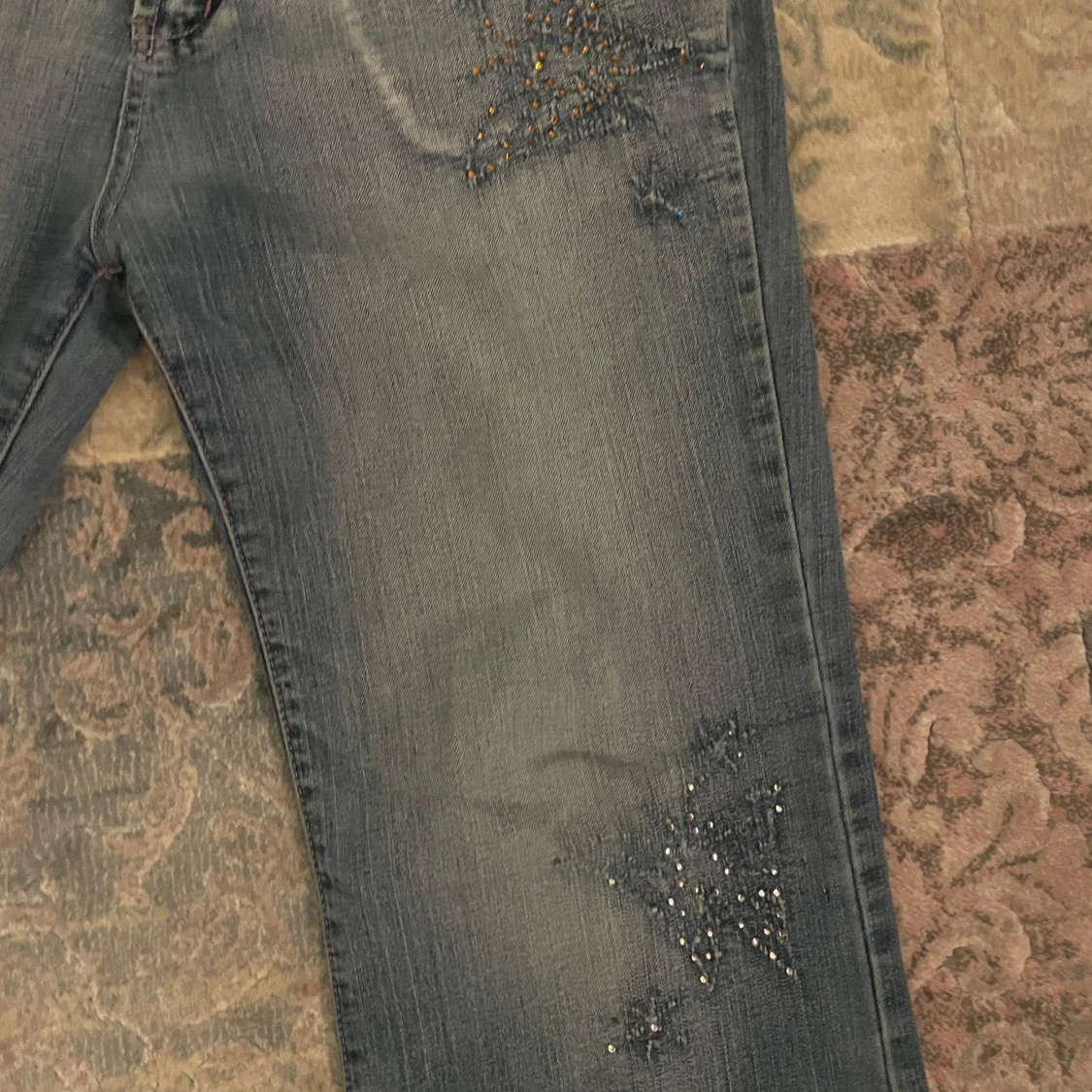 Snygga blå jeans från H&L med unika paljettdetaljer på framsidan och bakfickorna. Byxorna har en bootcut-stil och är perfekta för att ge en extra touch till din outfit. De har en klassisk femficksdesign och en knappgylf.