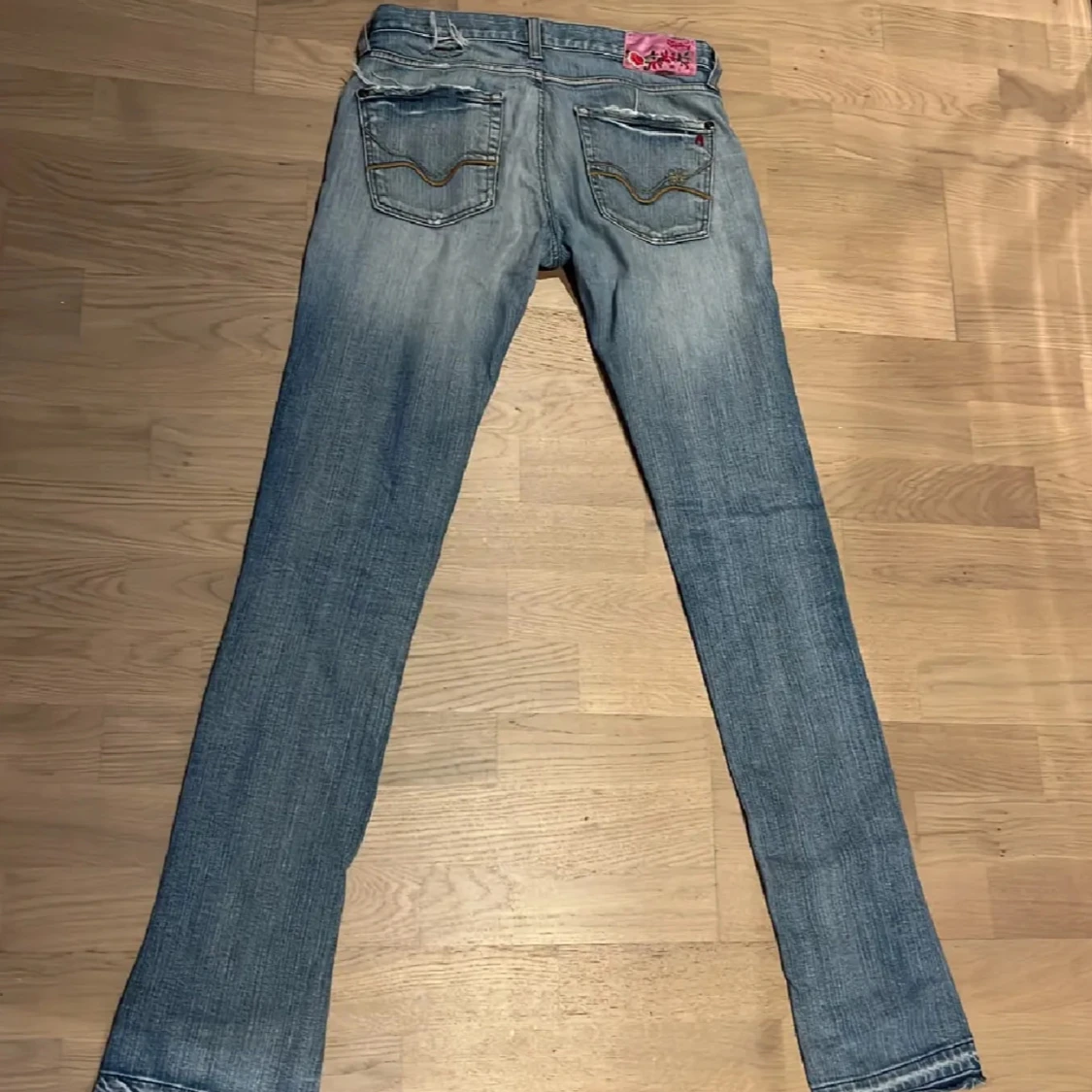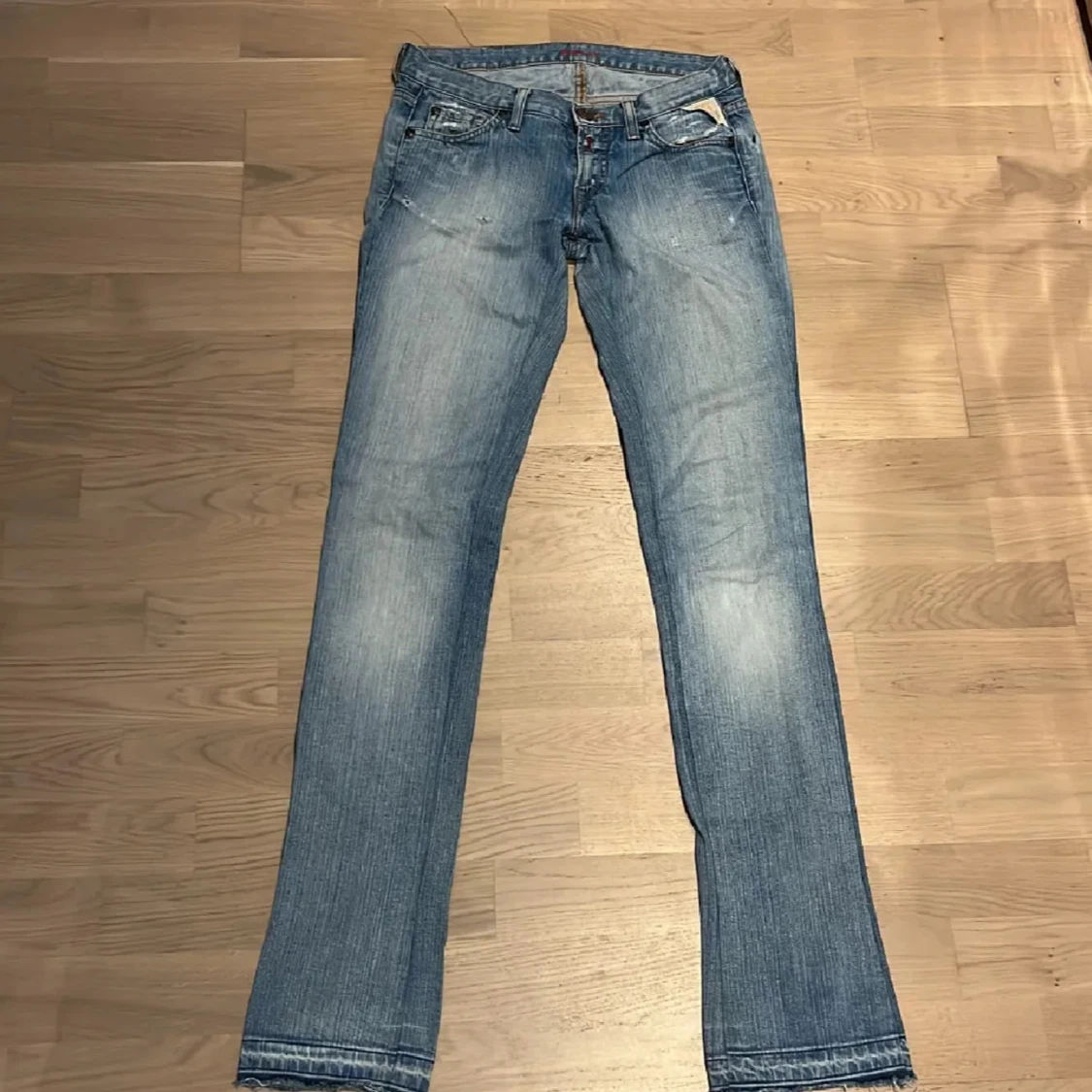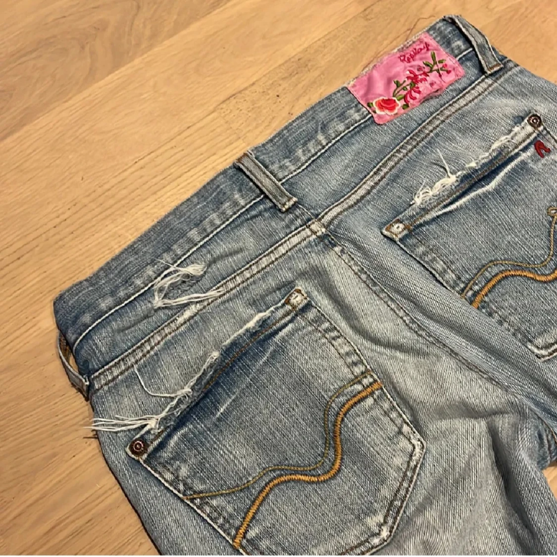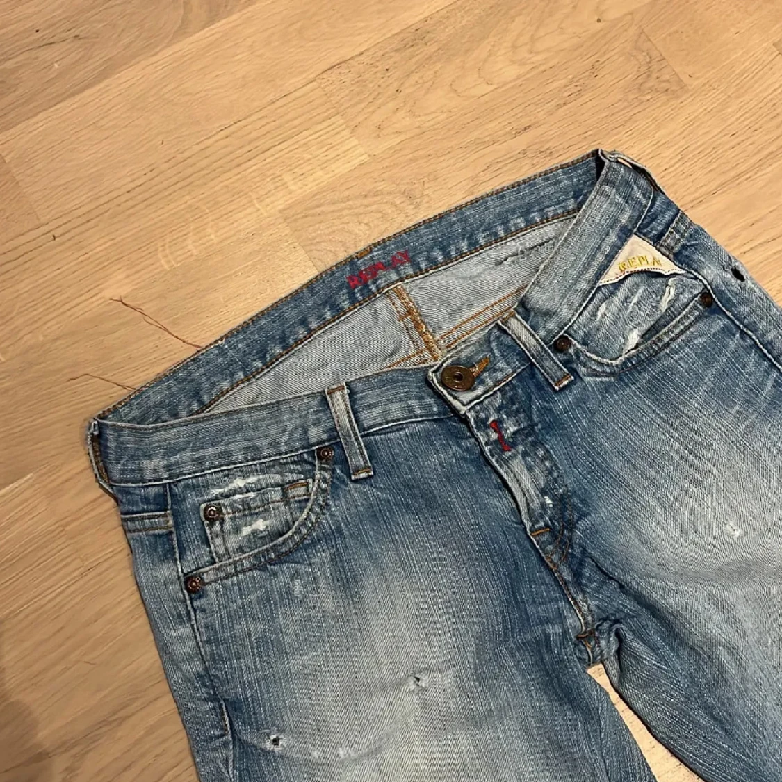 Snygga blå jeans från Replay med slitna detaljer ( se bild) och fina fickor på baksidan. Perfekta för en avslappnad stil. I storleken W26 L32. Hör av er om frågor!💞