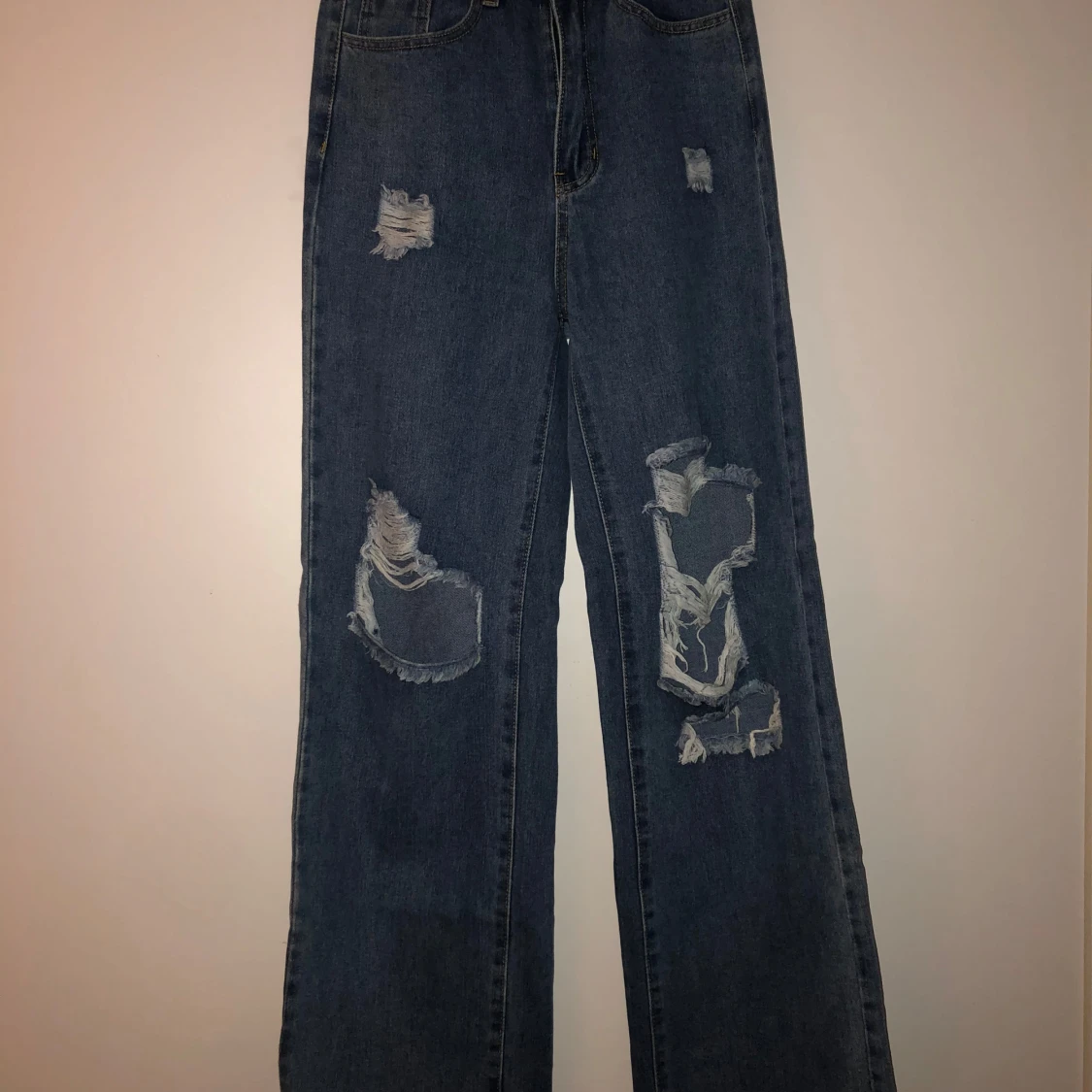 Blå jeans med slitningar och en lös passform. Har bara använt dessa en enstaka gång.