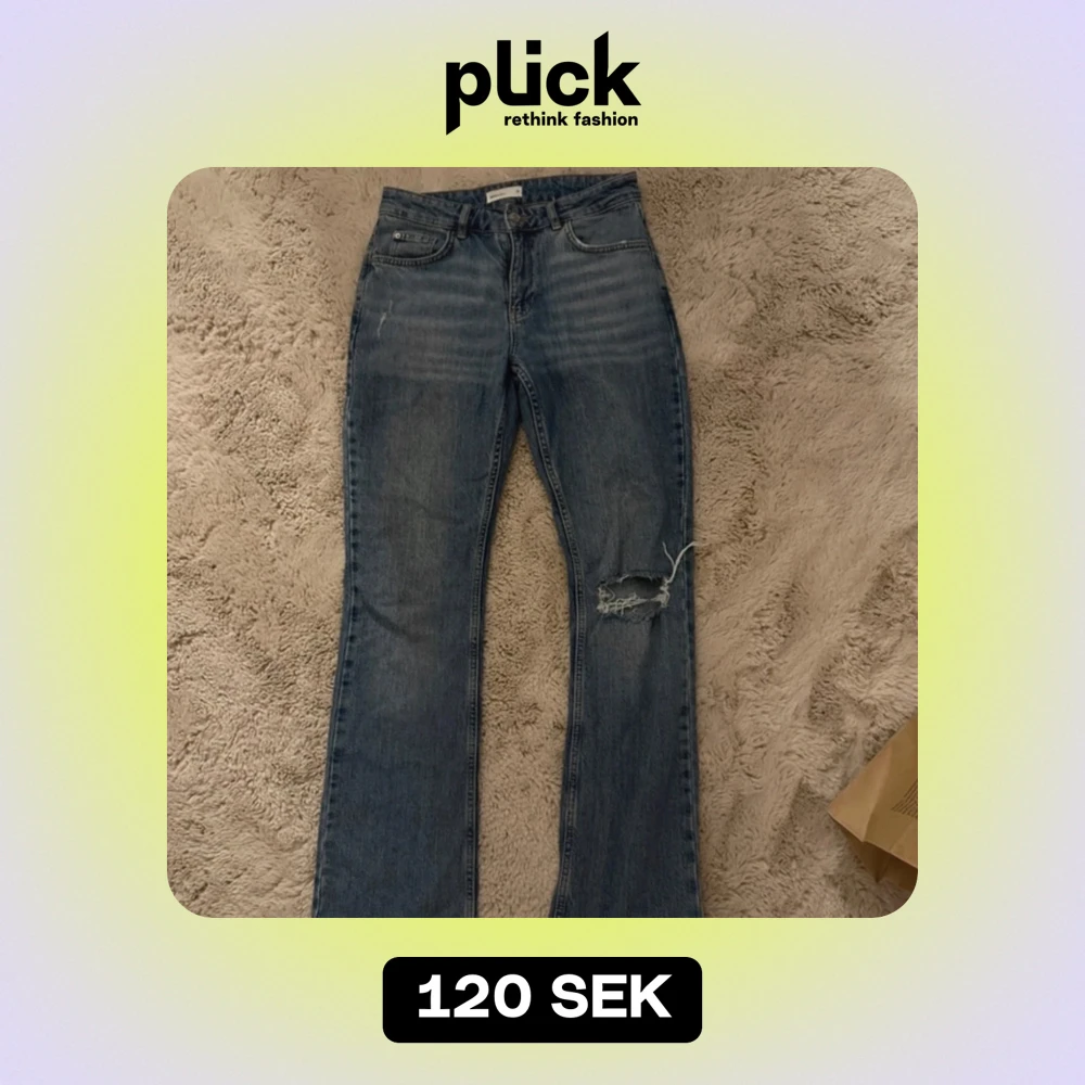 Säljer ett par snygga blå jeans i bra skick med hål på ena knät, dock förstora för mig.. pris går att diskutera☺️