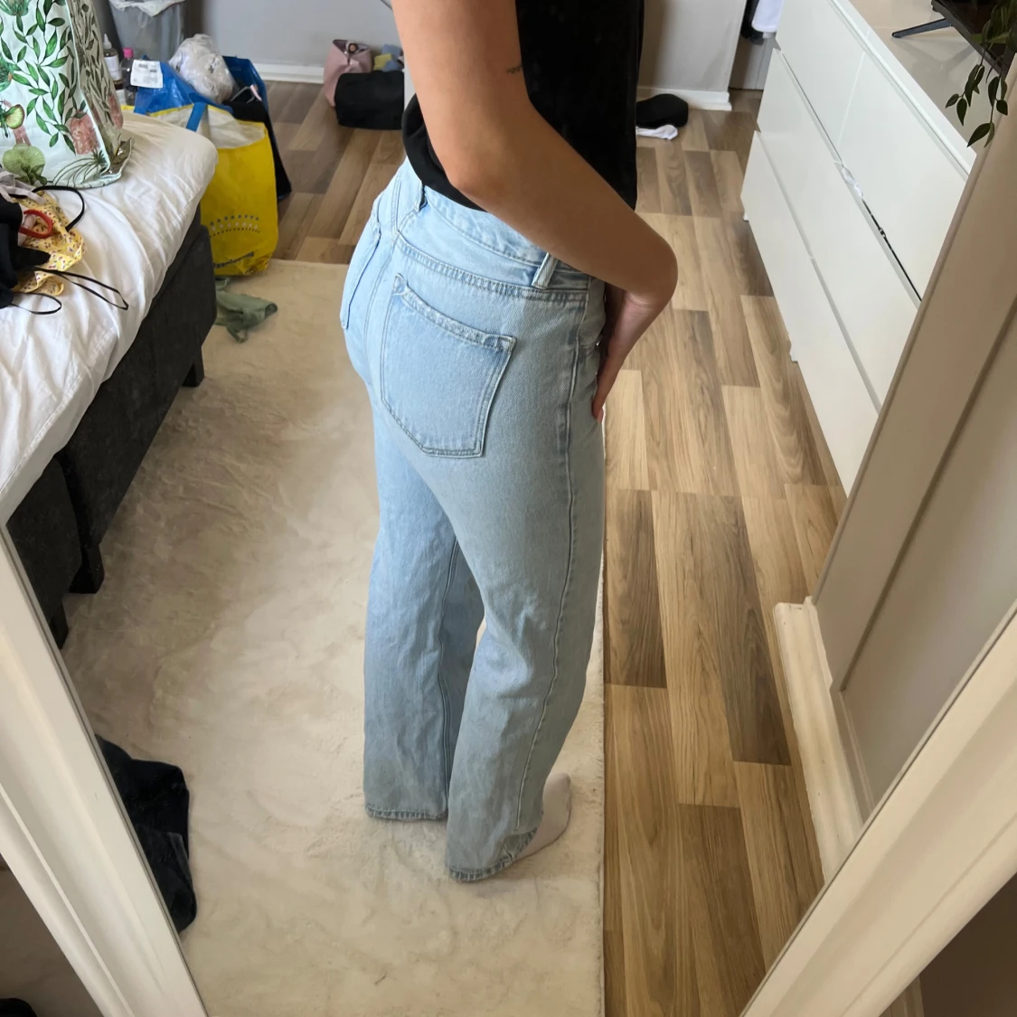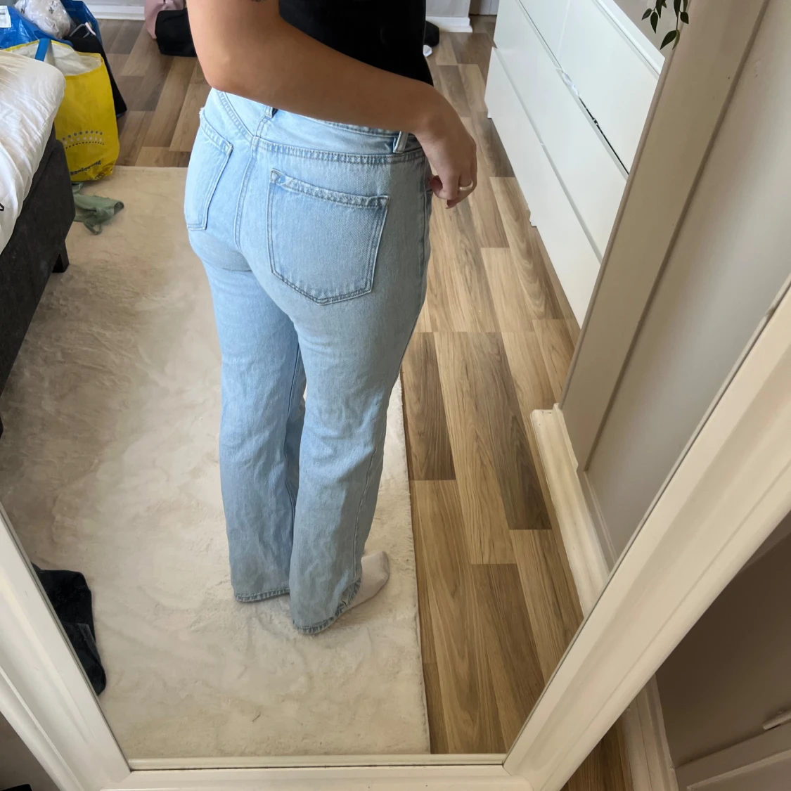Snygga ljusblå jeans med rak passform och klassisk femficksdesign. De har en knapp och dragkedja framtill och är perfekta för en avslappnad stil. Passar bra till både sneakers och boots.