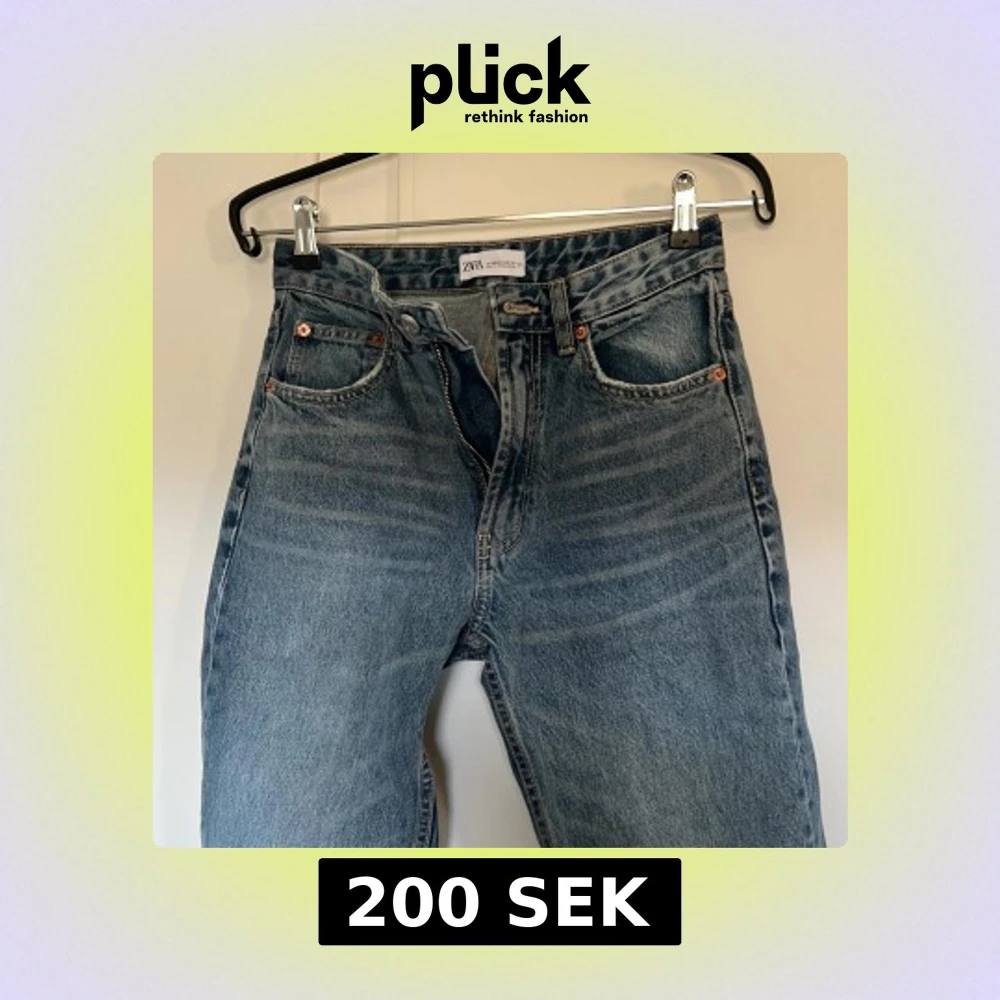 Säljer ett par klassiska blå jeans från Zara. De har en rak passform med dragkedja och knapp framtill. Jeansen har fem fickor och är perfekta för en avslappnad stil. Passar till många olika outfits! Väldigt snygg tvätt!