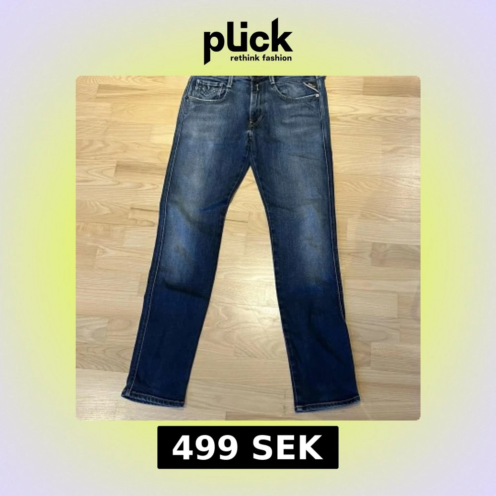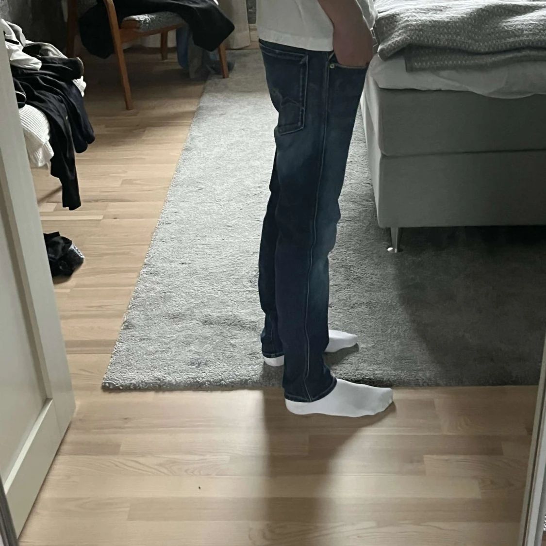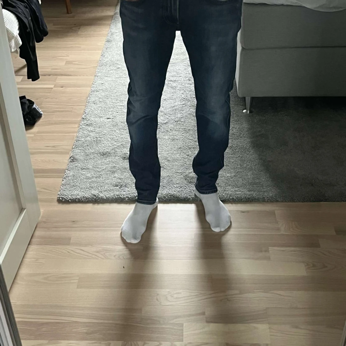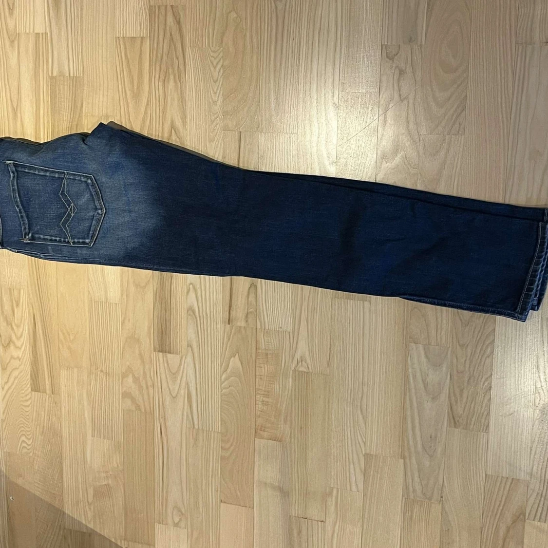 Snygga blå jeans med klassisk femficksdesign och dragkedja. De har en straight passform och är perfekta för en avslappnad stil. Byxorna har en lätt tvättad look som ger dem en cool vibe. W31 L32,kontakta oss vid frågor🤝
